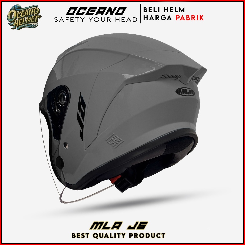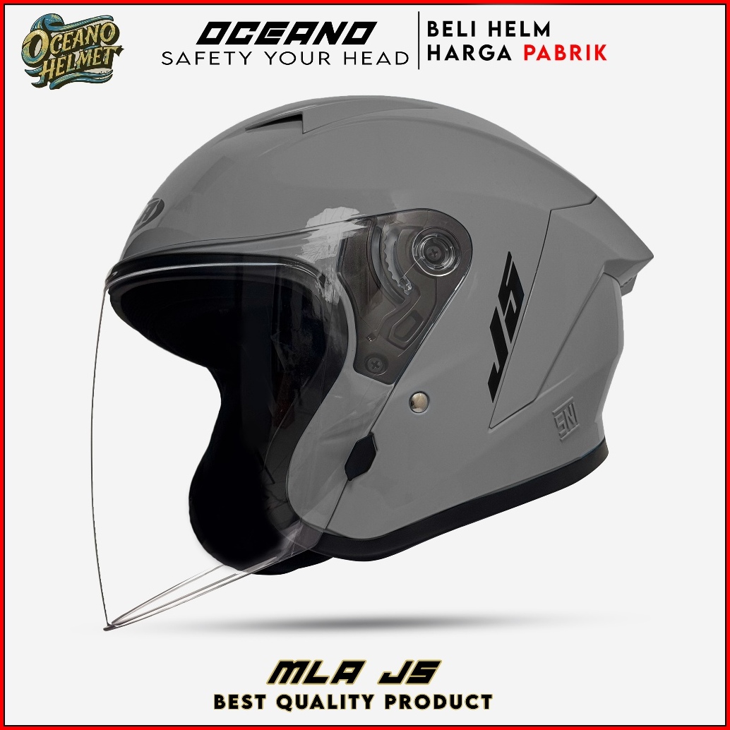 Helm Mla J5 Grey Glosy Kaca Visor Bening Helm Half Face Premium Untuk Pria Dan Wanita Dewasa Sni