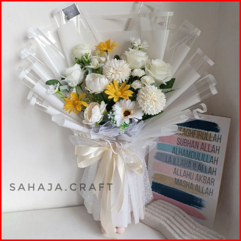 Beautiful In White Buket Bunga Artificial Buket Bunga Cantik Bouquet Bunga
