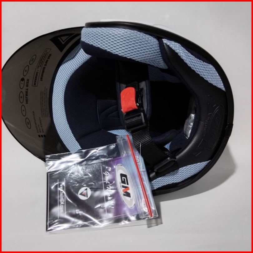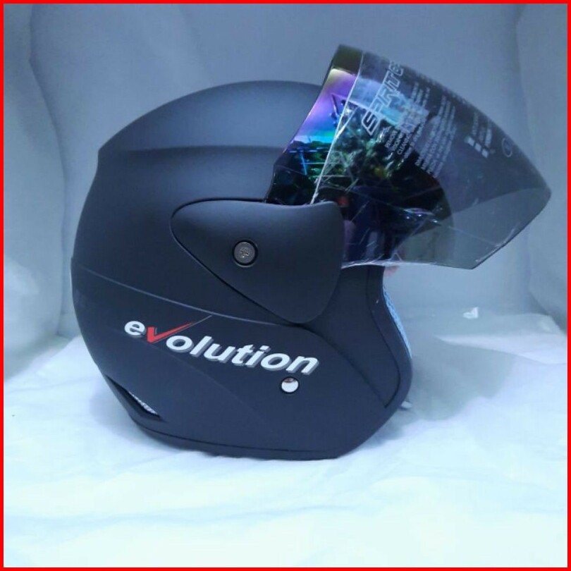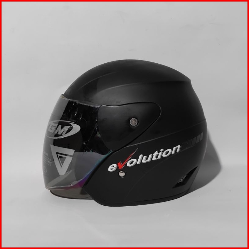 Helm Gm Evolution Logo Baru Solid Hitam Doff - Black Doff Kaca Pelangi Helm Half Face