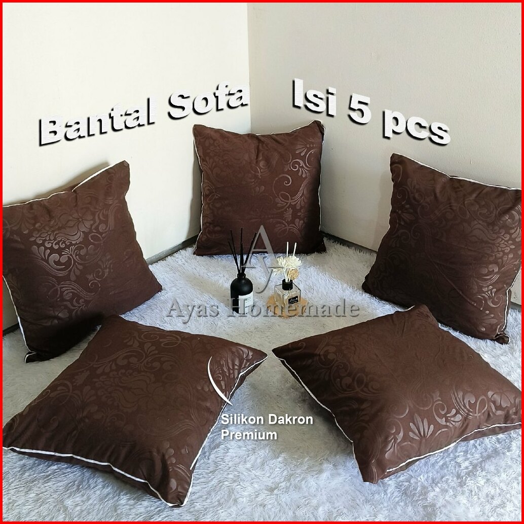 1 Set 5 Pcs Bantal Sofa Bantal Kursi Motif Emboss Polos 40x40