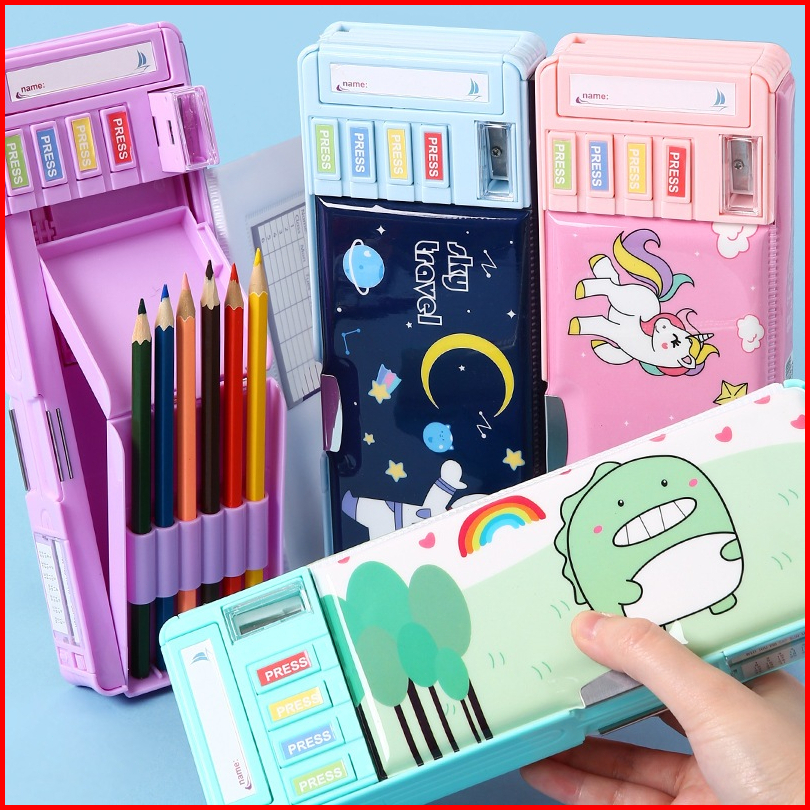 Kotak Pensil Dua Sisi Satu Sisi Kotak Pensil Multifungsi Berkinerja Tinggi Berbagai Pola Untuk Anak Laki-laki Dan Peremp