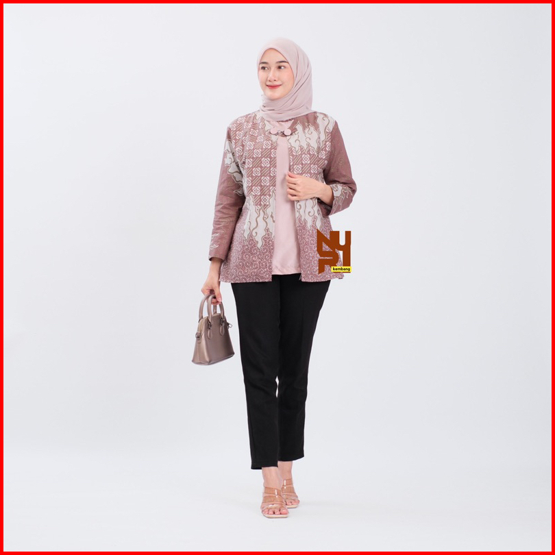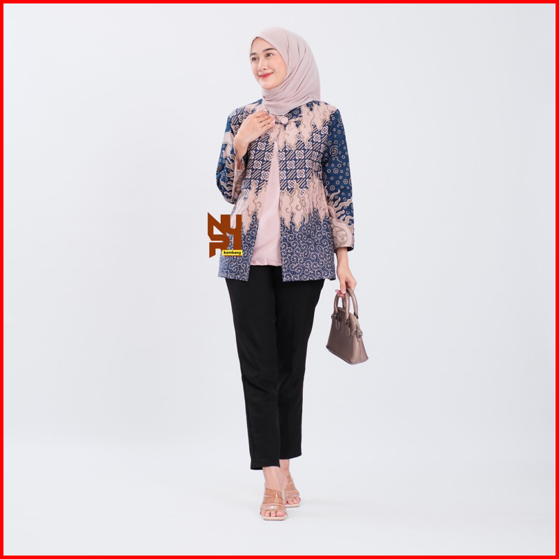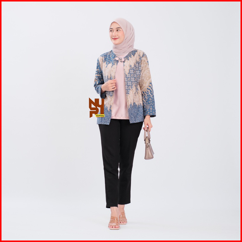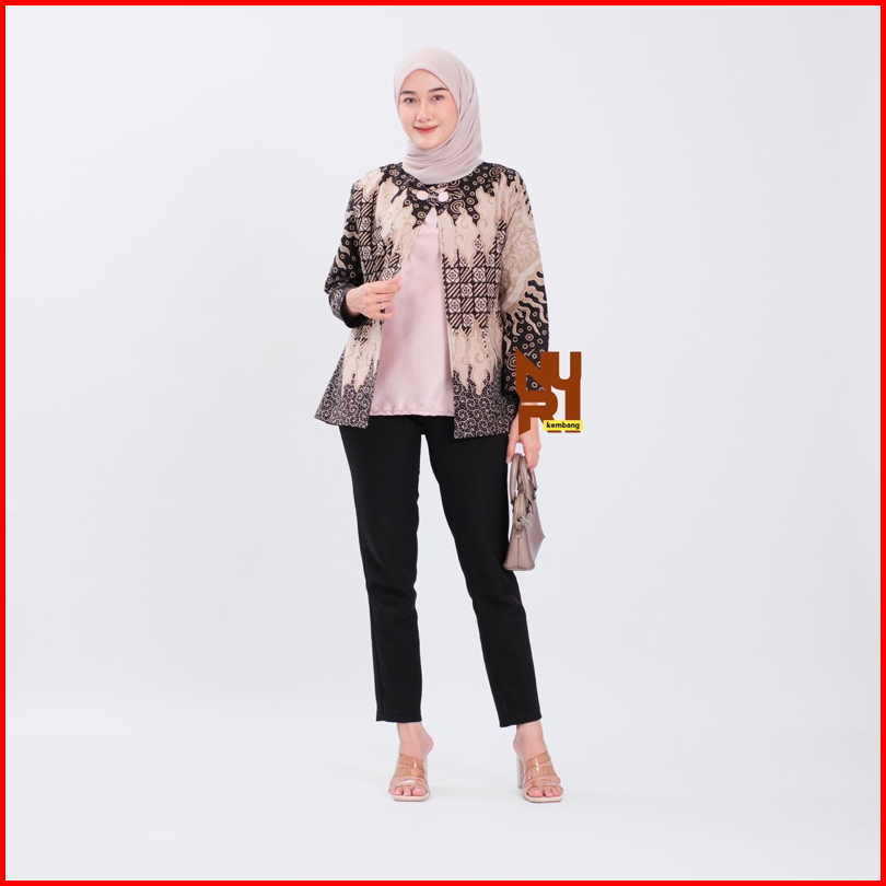 Bolero Seroja Batik Wanita Baju Seragam Kerja Kantor Modern Lengan Panjang Sudah Ada Inner Resleting Belakang