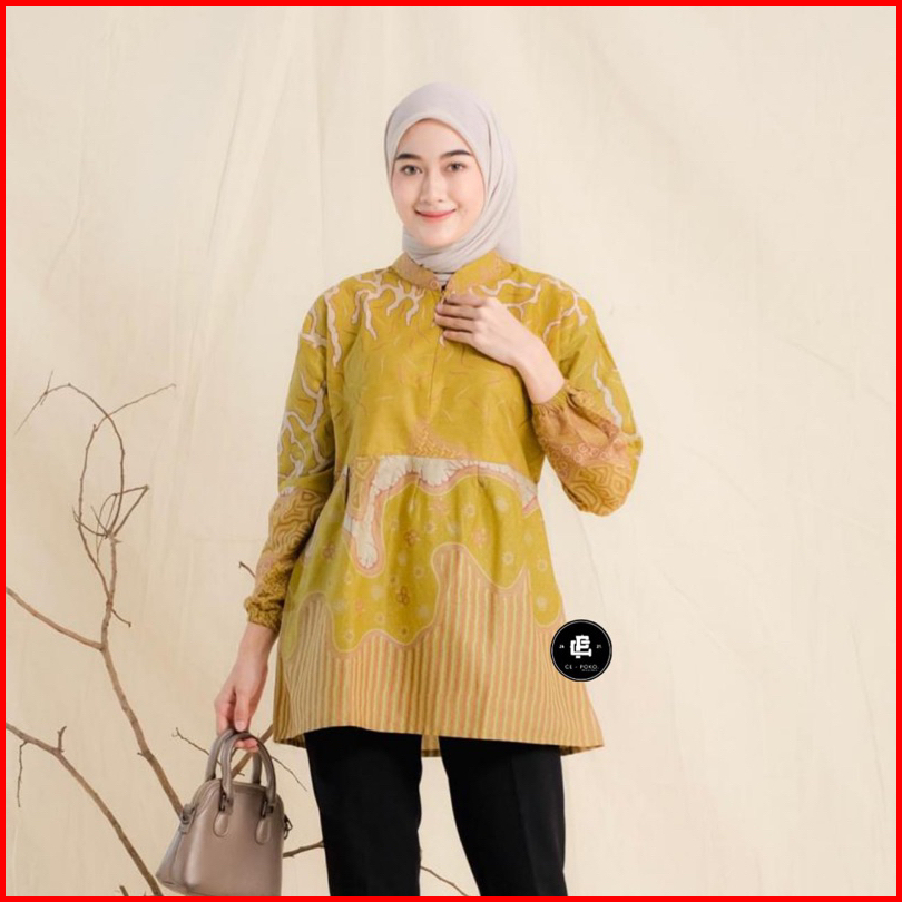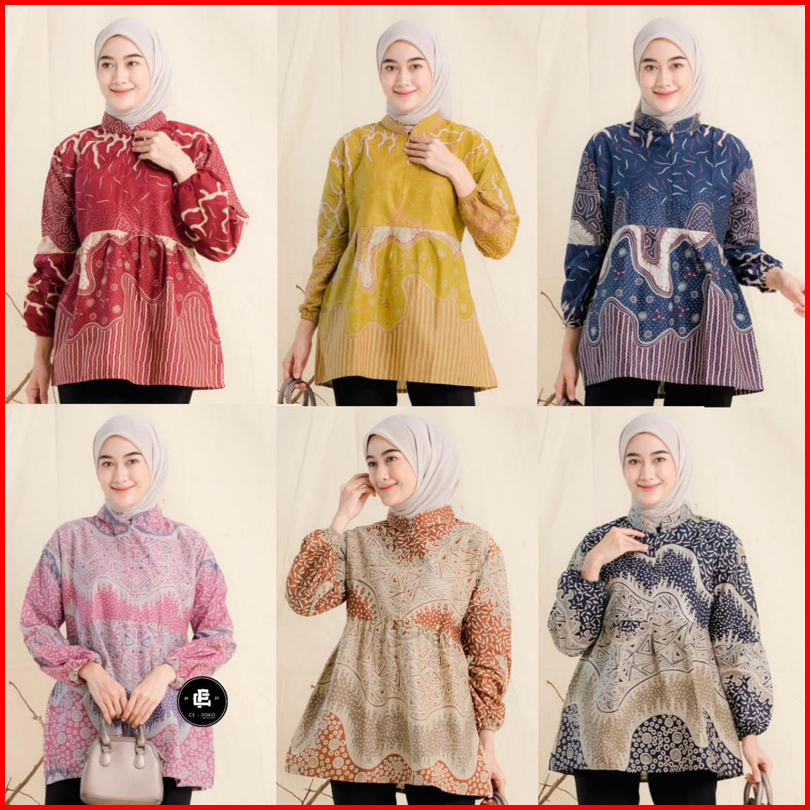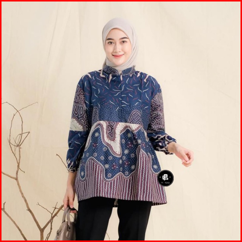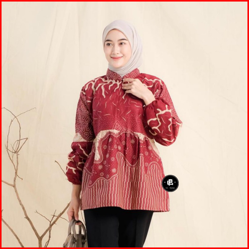 Batik Blouse Lengan Balon Wanita Blus Batik Kerja Cantik Modis Elegan