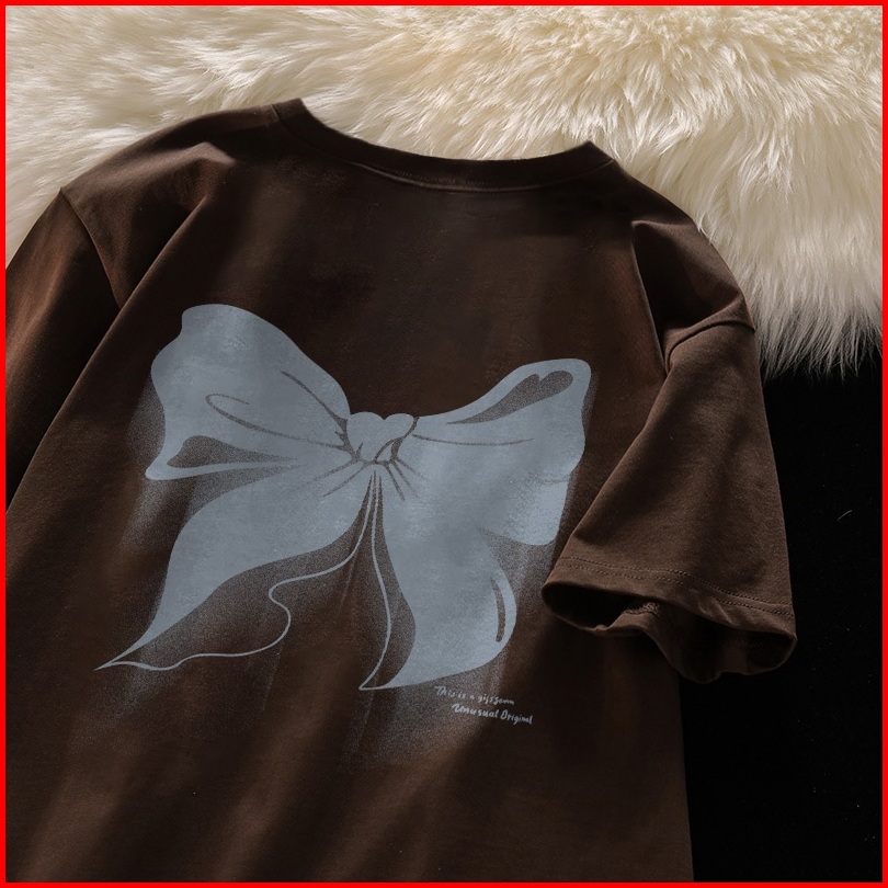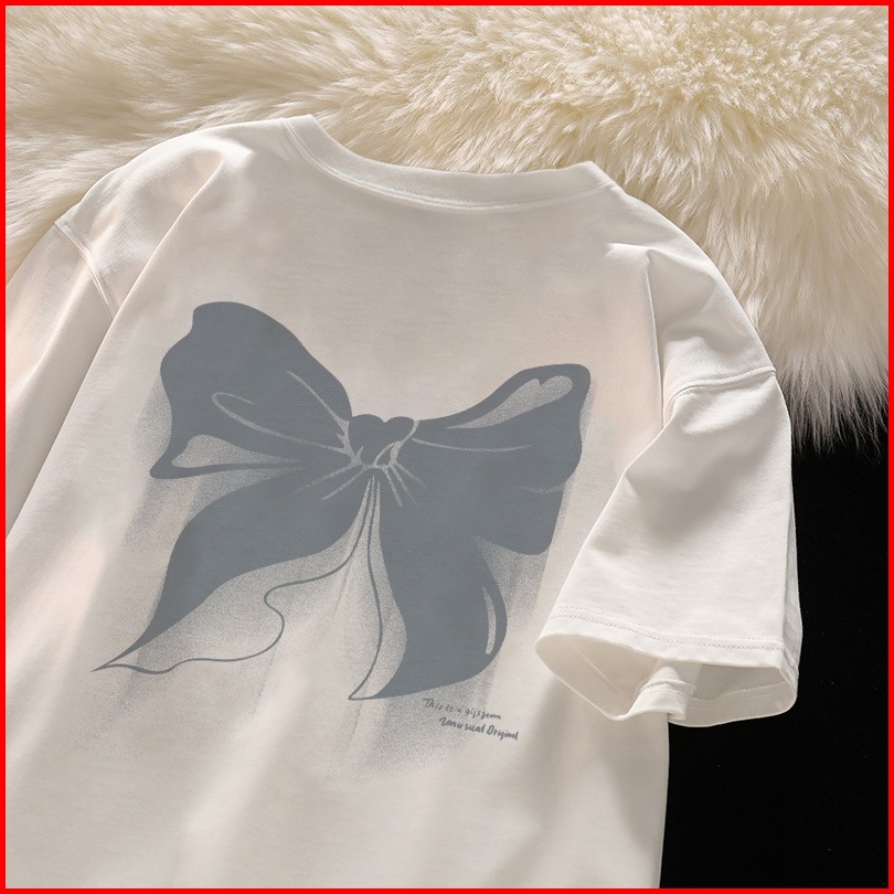 Po Floret Putih Kaos Oversize Cute Blue Bow Korean Style Wanita Baju Atasan Wanita Terbaru