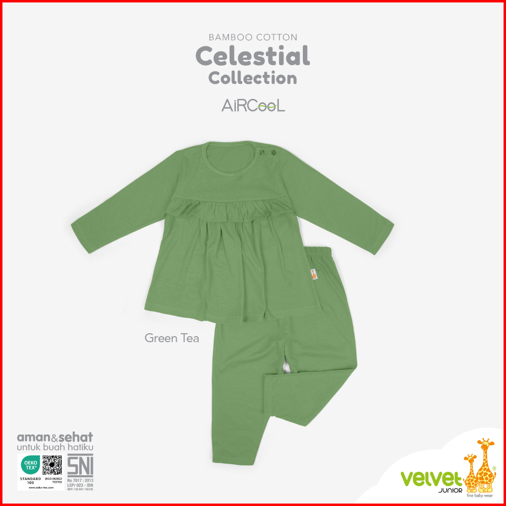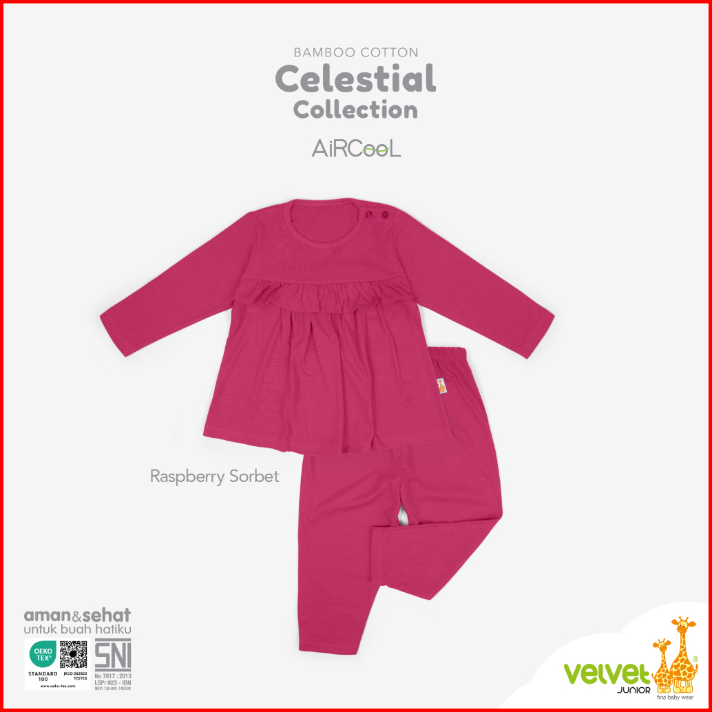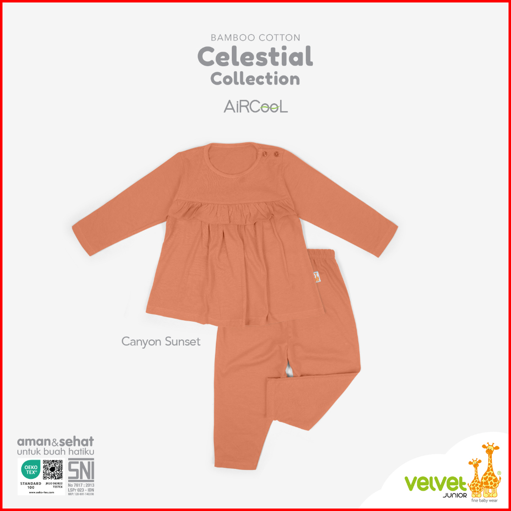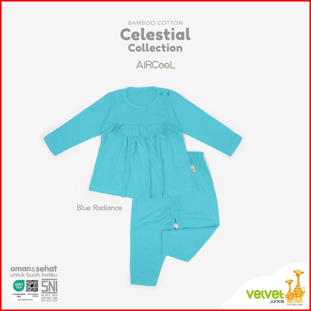 Velvet Junior Piyama Bamboo Cotton Baju Anak Perempuan Ruffle Dada Celana Panjang - Ariana - Celestial 7 Series