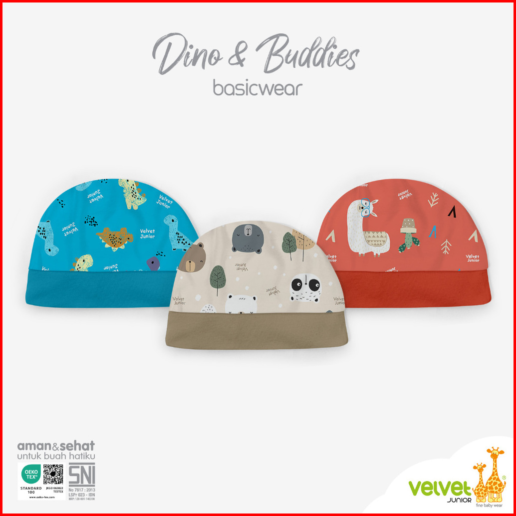 Velvet Junior Topi Bayi - Basicwear Dino Buddies
