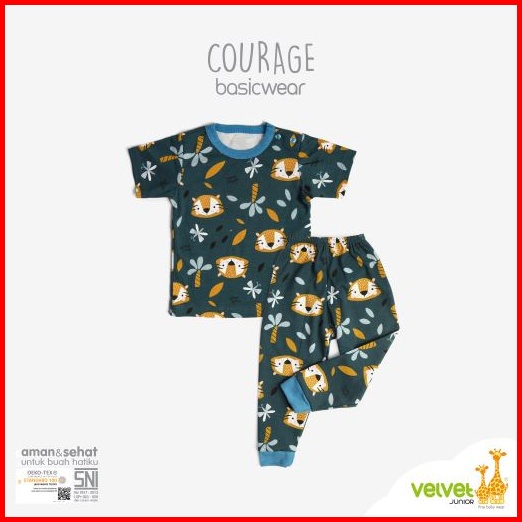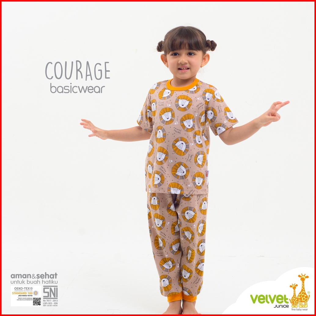 Velvet Junior Setelan Baju Anak Kancing Pundak Pendek Celana Panjang - Basicwear Courage