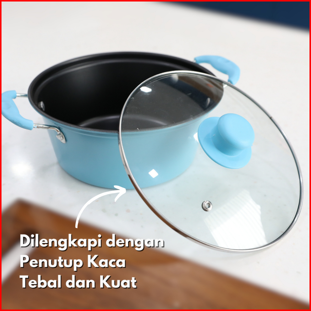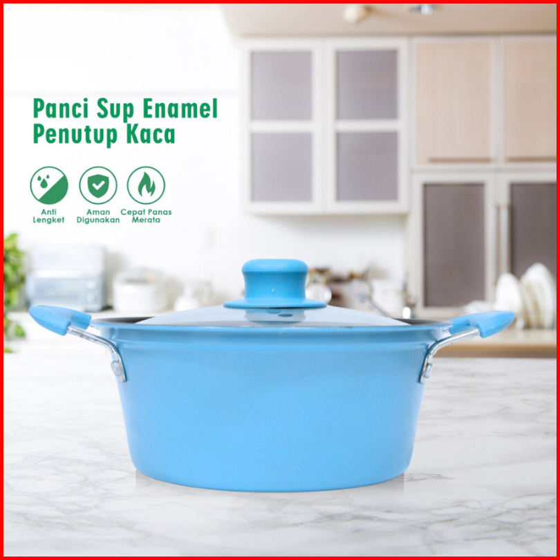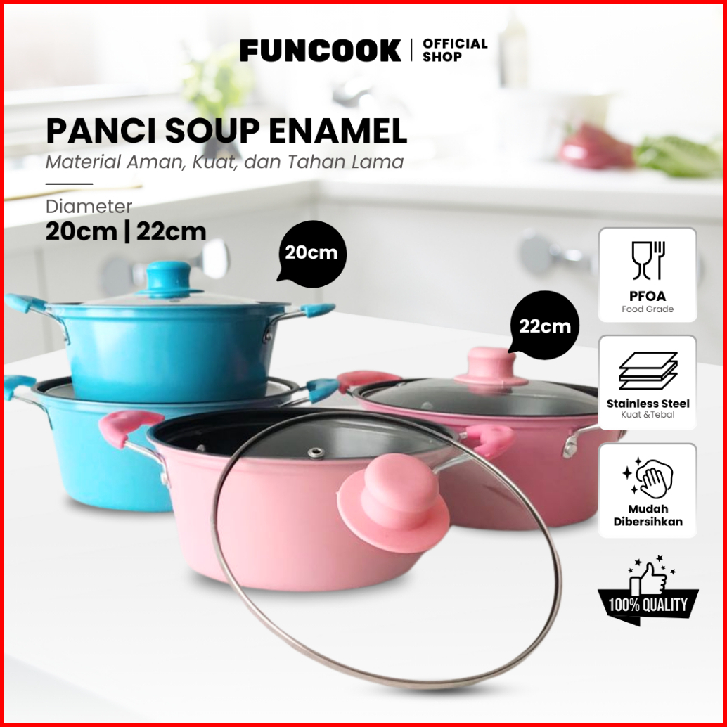 Funcook Panci Enamel Warna Anti Lengket Tutup Kaca Panci Kuah Sup