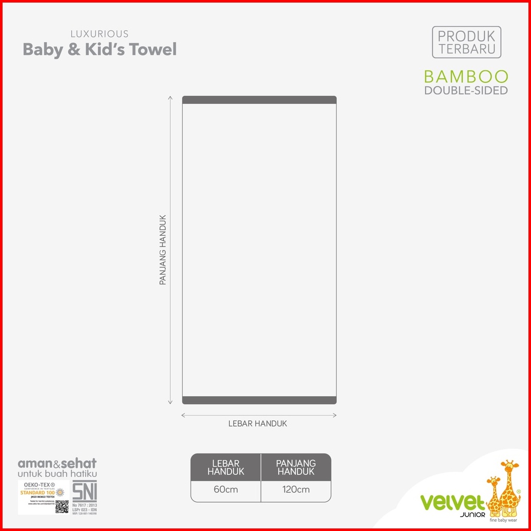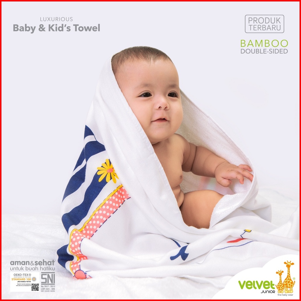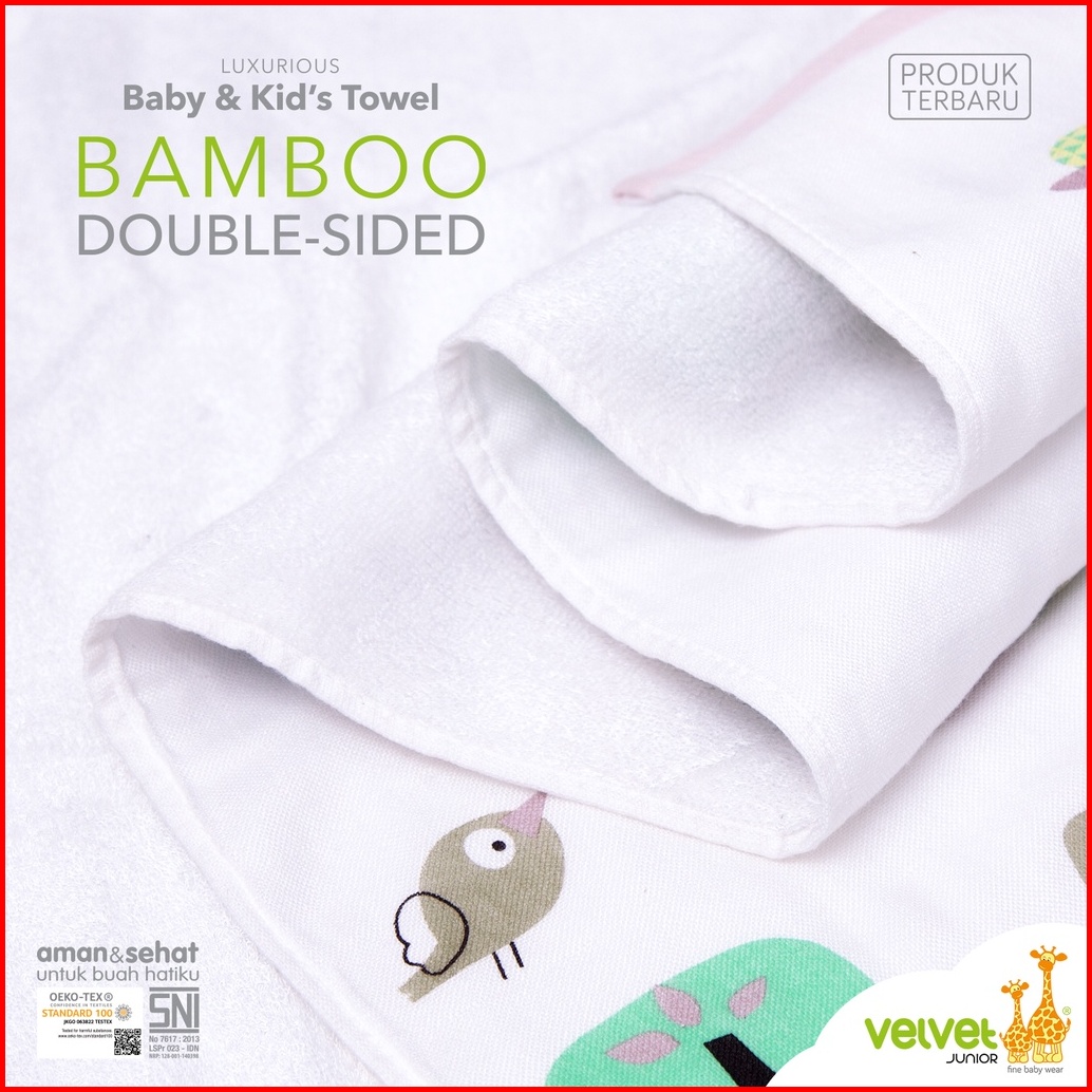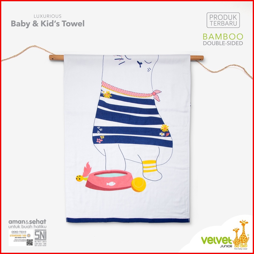 Velvet Junior Handuk Bayi Dan Anak - Bamboo Double Sided - Motif Kucing - Girl Series
