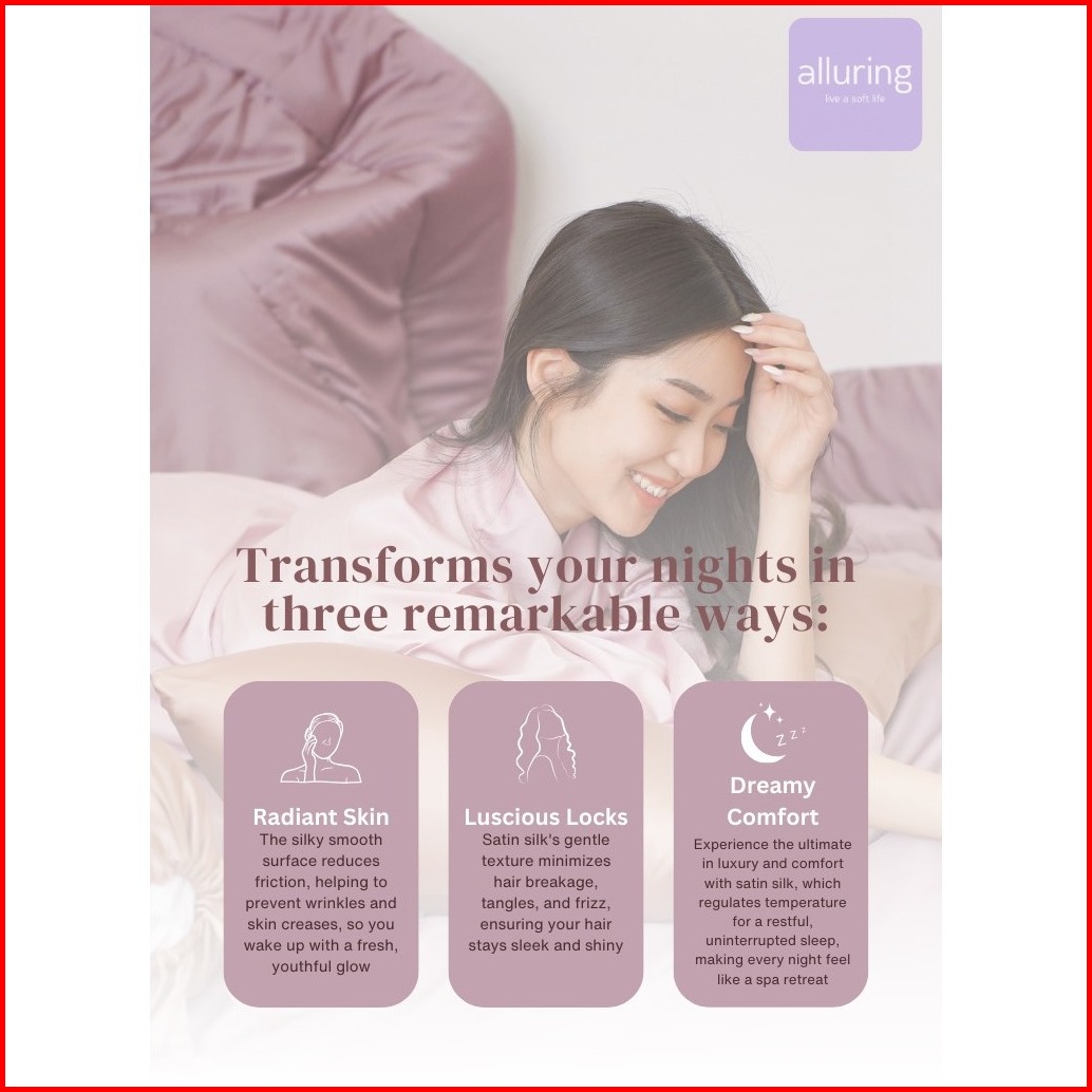 Alluring Bundle Set Sarung Bantal Dan Guling Original Alluring Premium Original High-quality Satin Silk