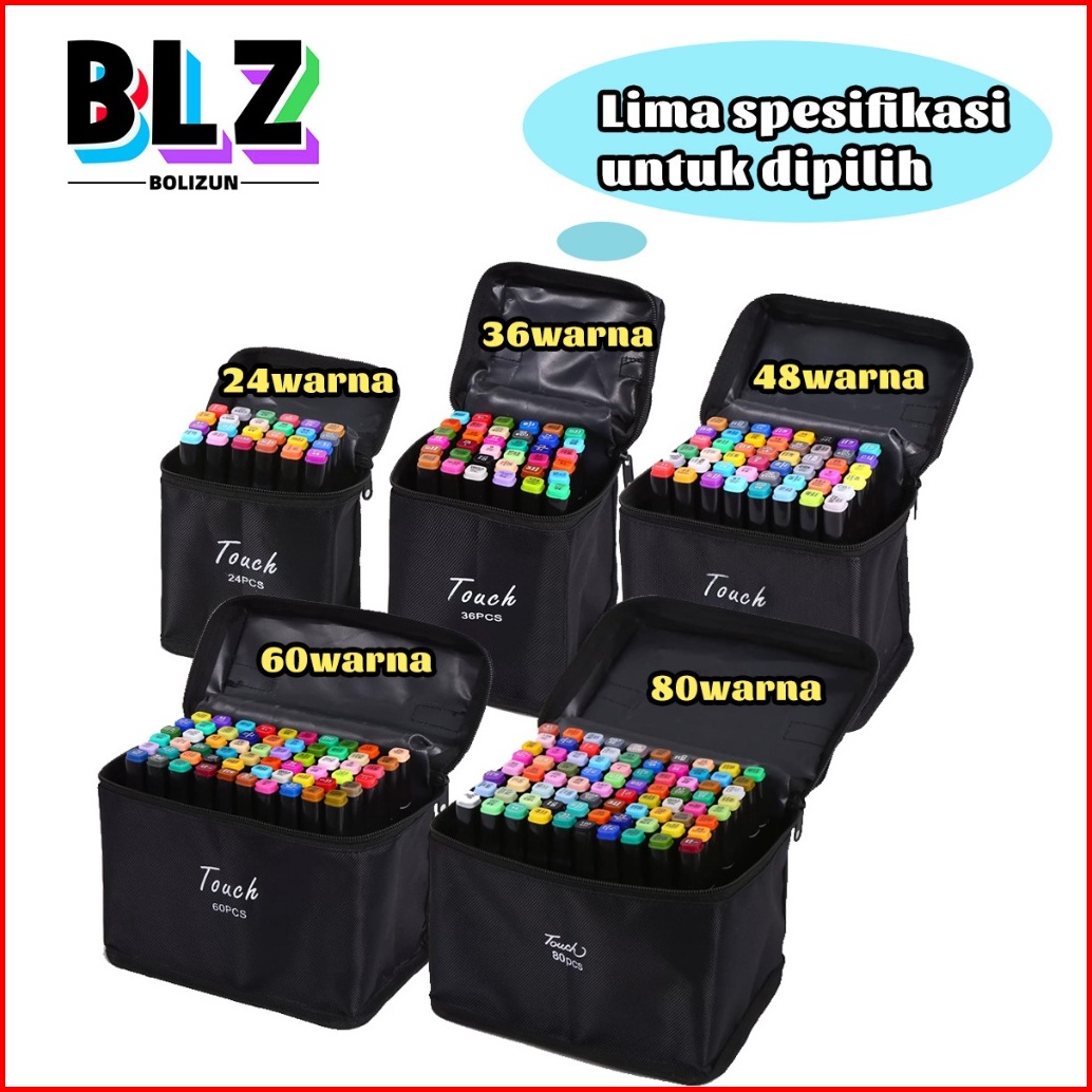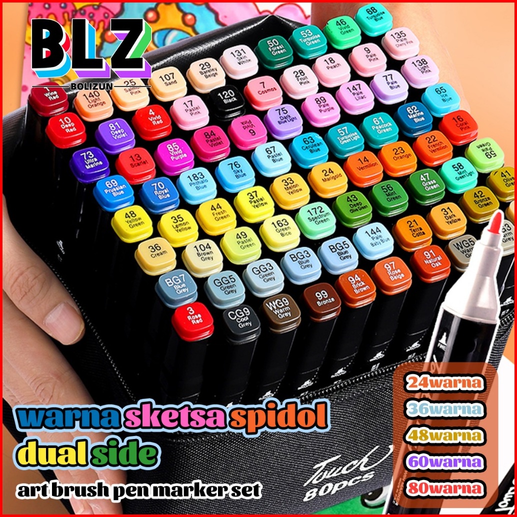 Bolizun 2 In 1 Spidol Dan Stabilo Touch Isi 24 36 48 60 80 Warna Dual Side Fine Art Brush Pen Sketsa