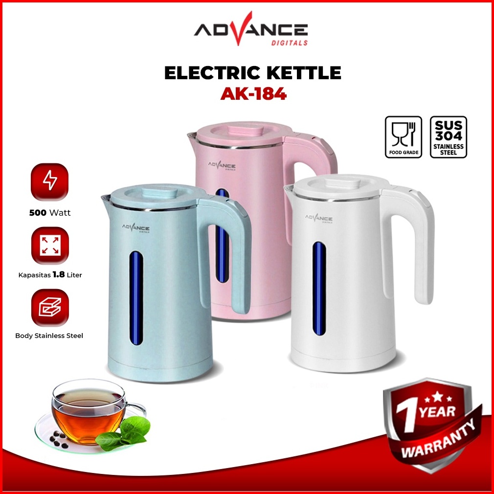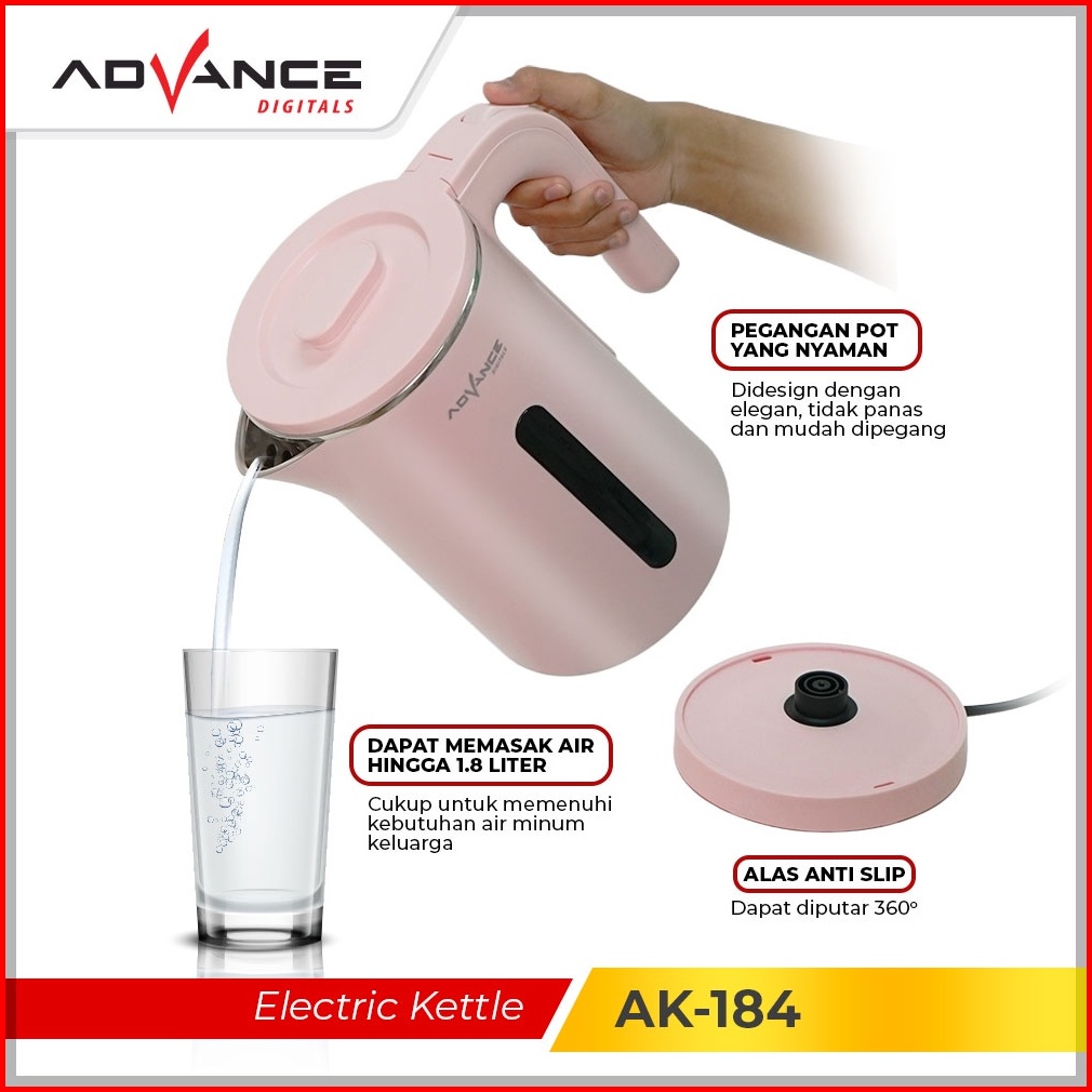 Advance Ak184 Teko Listrik 1.8 Liter Stainless Steel 304 Food Grade Garansi Resmi 1 Tahun