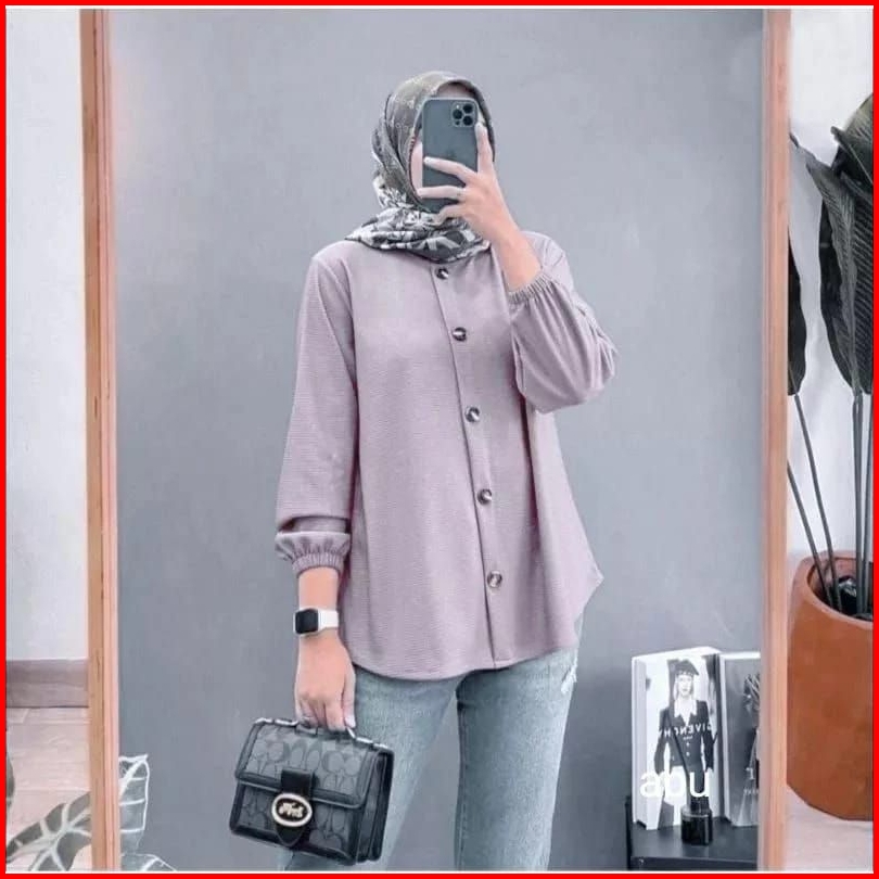 Kemeja Wanita Kekinian Kemeja Polos Crinkle Air Flow Atasan Wanita Lengan Panjang Kemeja Oversize Wanita Blouse Wanita