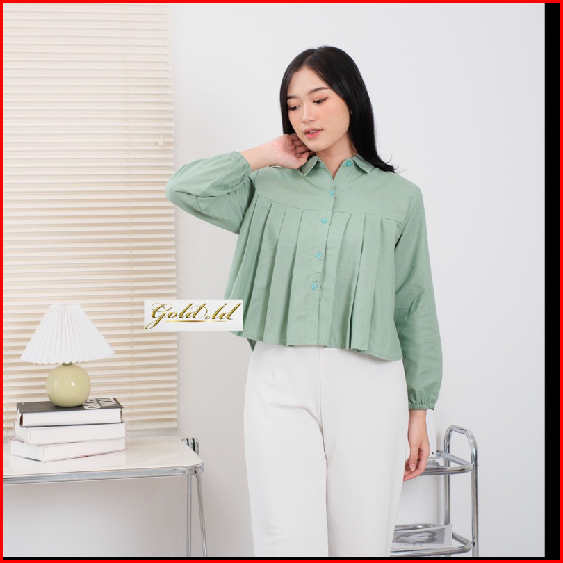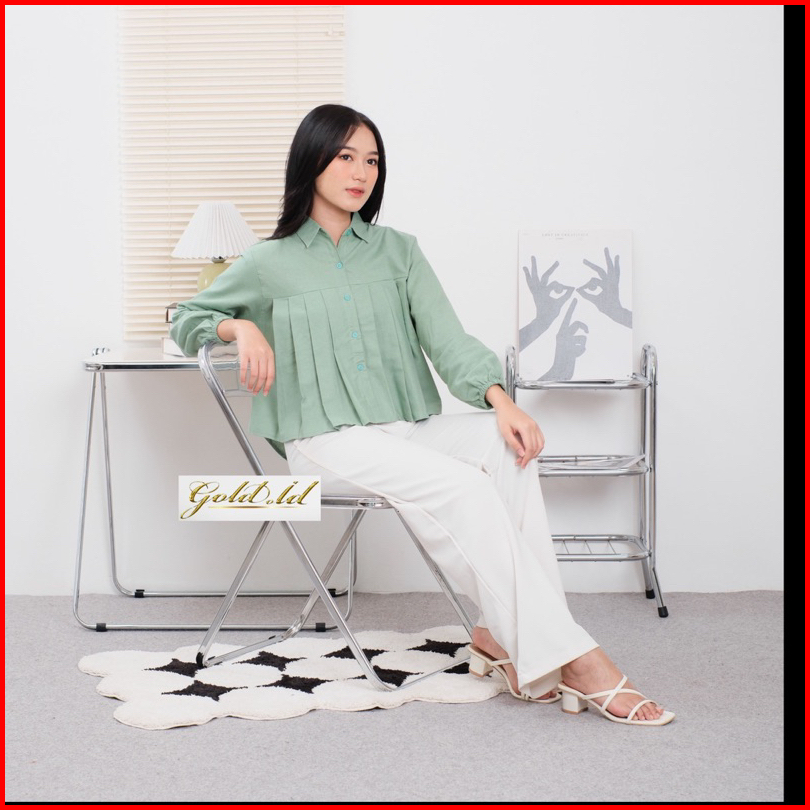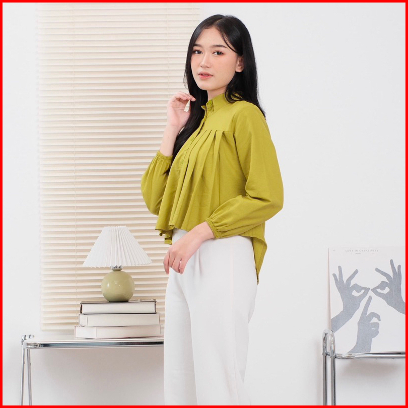 Msmo Dear Top Longsleeve Pleats Shirt Kemeja Wanita Kemeja Lengan Panjang Kemeja Kantor Atasanwanita