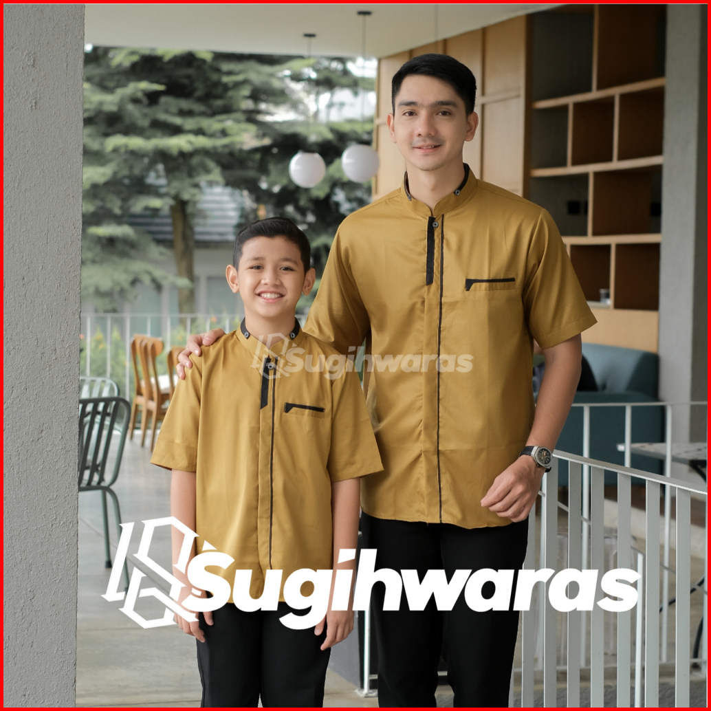Baju Koko Couple Ayah Dan Anak Laki Laki Warna Burgundy Lengan Pendek Bahan Toyobo Import Terbaru 2025