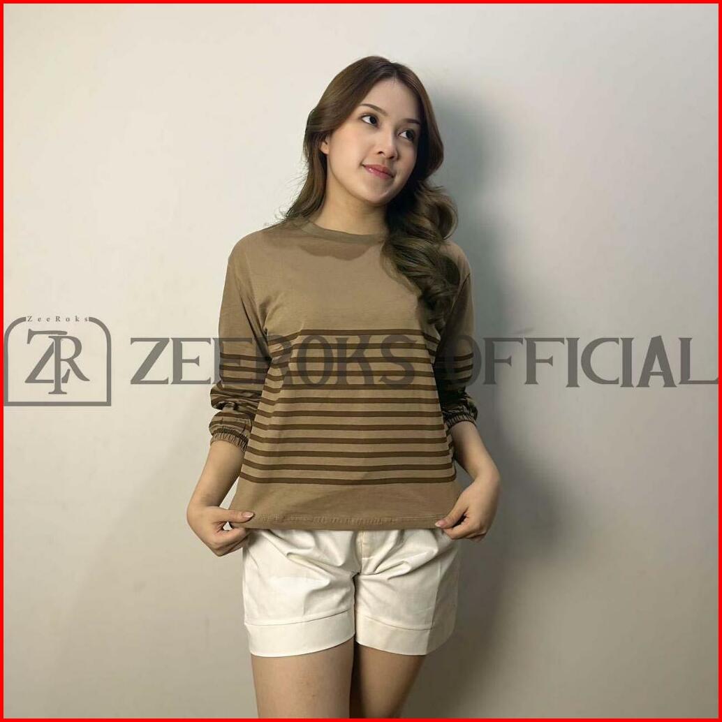 Zeeroks. Baju Wanita Lengan Panjang Blouse Balon Salur Warna Bahan Cotton Combed