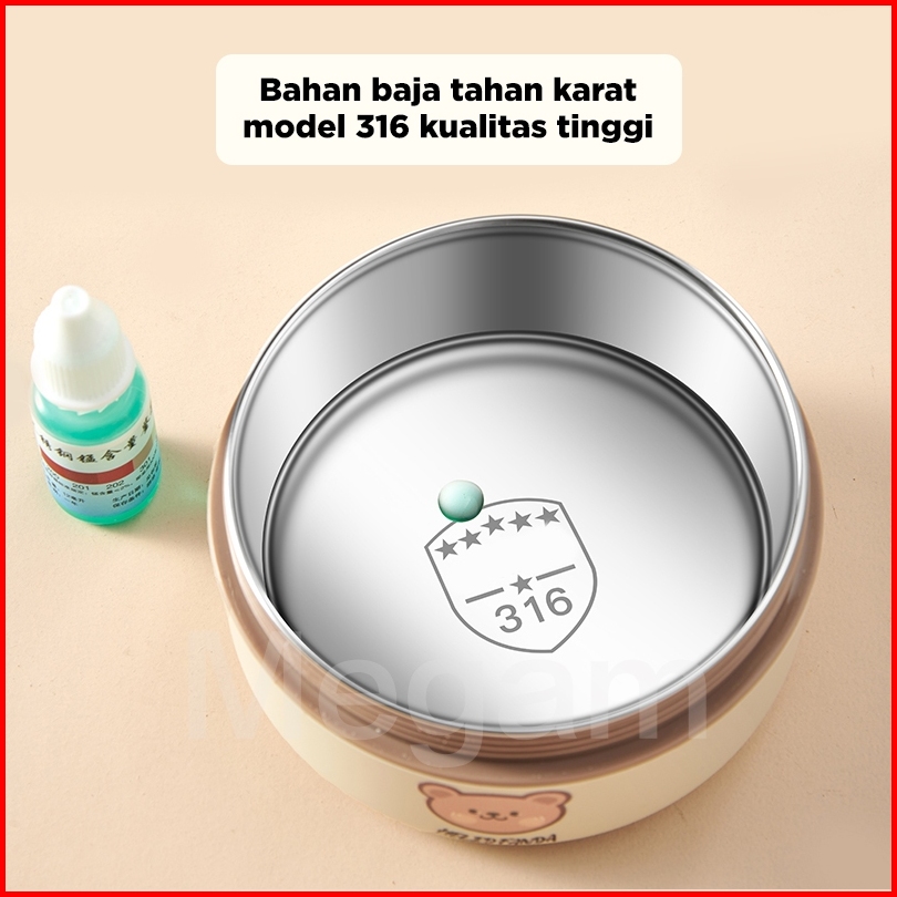 Megam Tempat Bekal Anak Karakter Beruang Lucu Kotak Makan Siang Stainless Steel Tahan Panas Bag Lunch Box Hmb108b