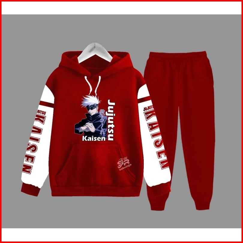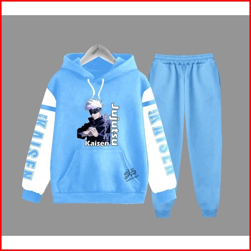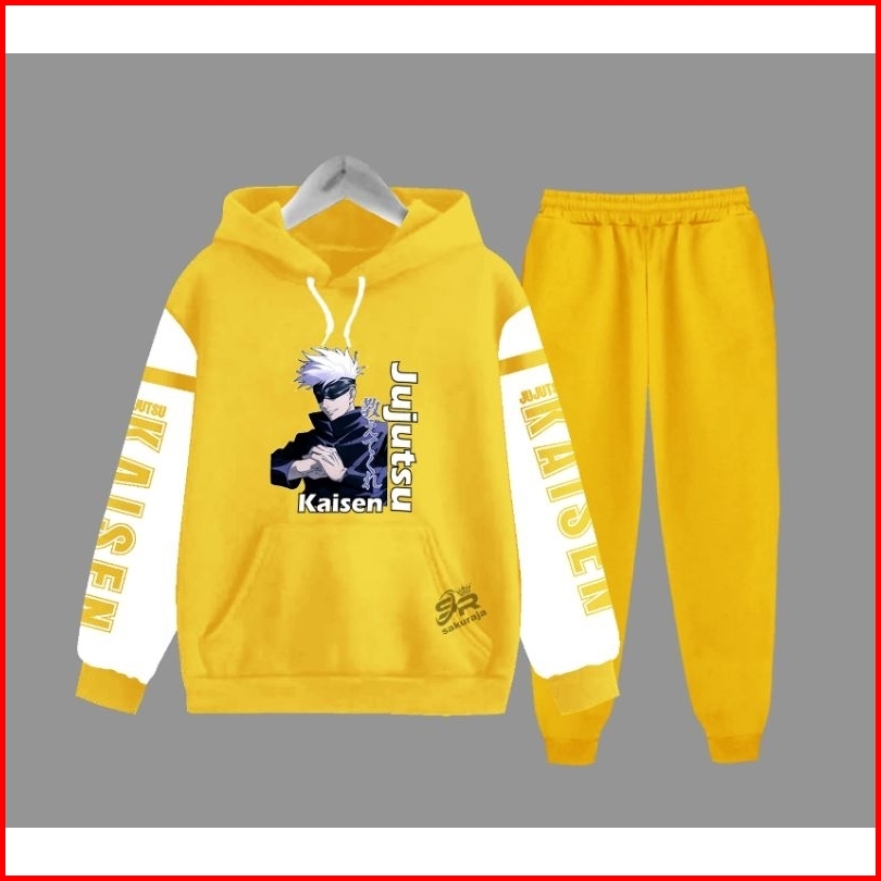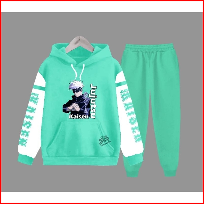 Setelan Hoodie Anak Karakter Jujutsu Kaisen Kombinasi Tangan Putih