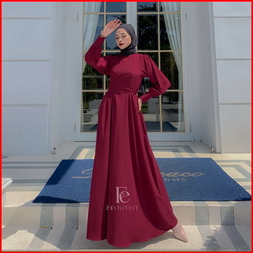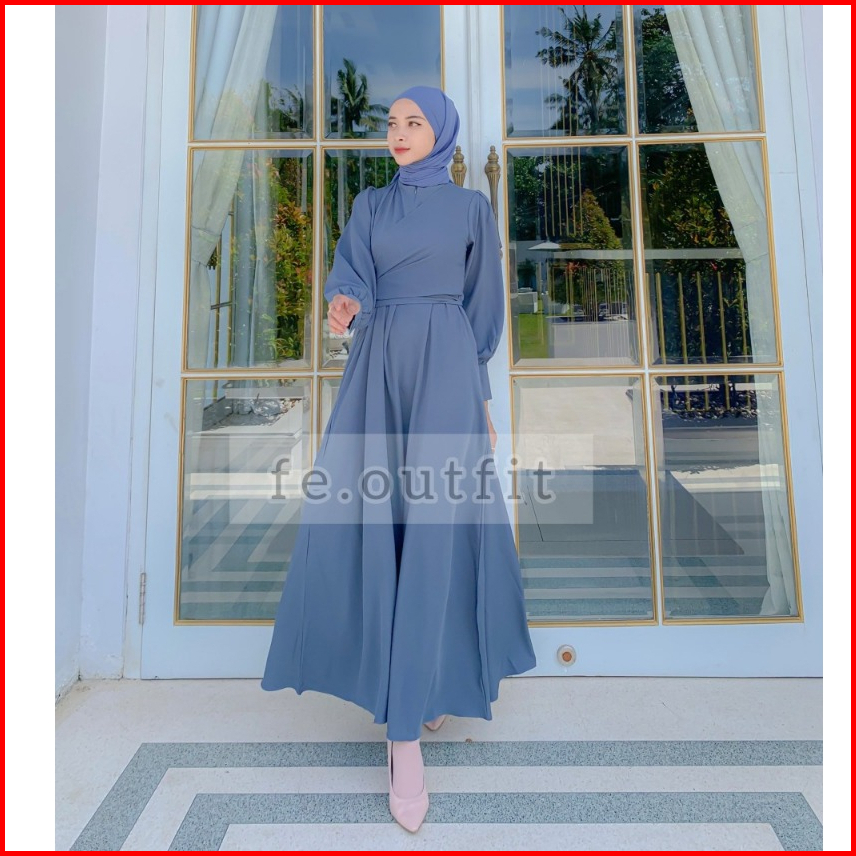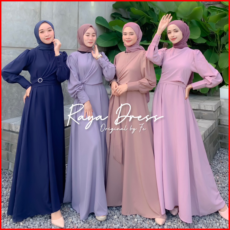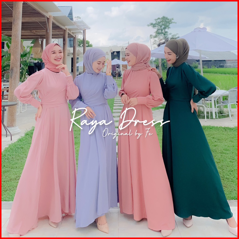 Raya Dress Korean Original By Fe Gamis Lebaran Simpel Elegan Premium Quality - Feoutfit