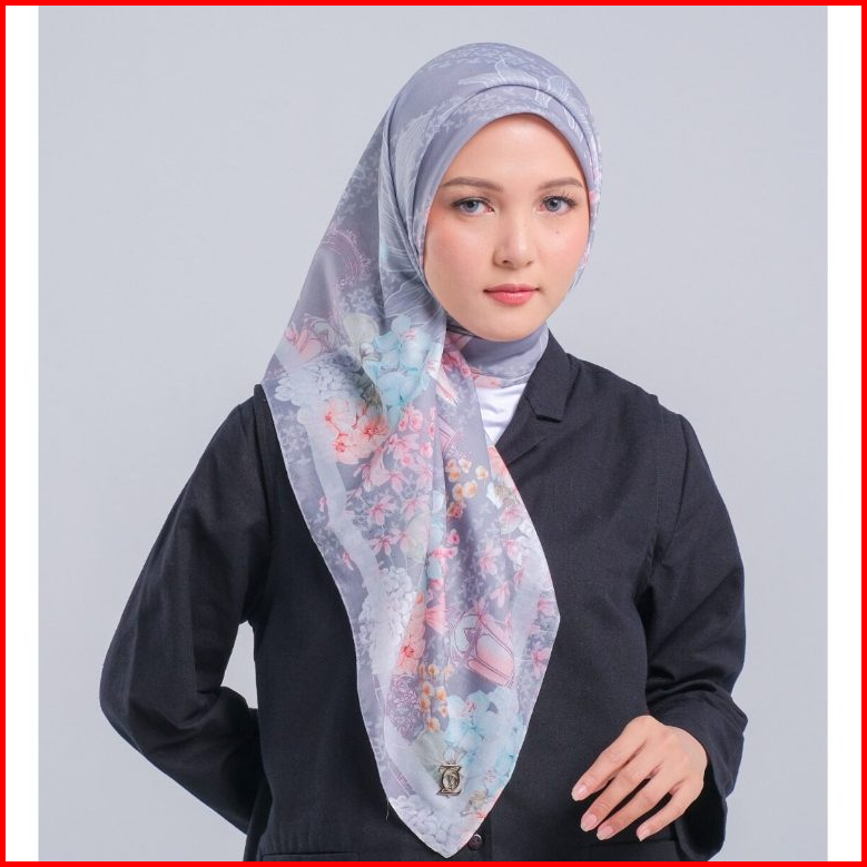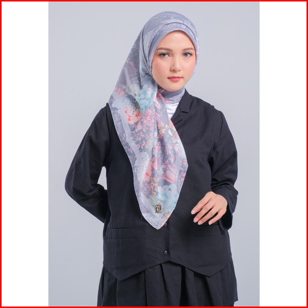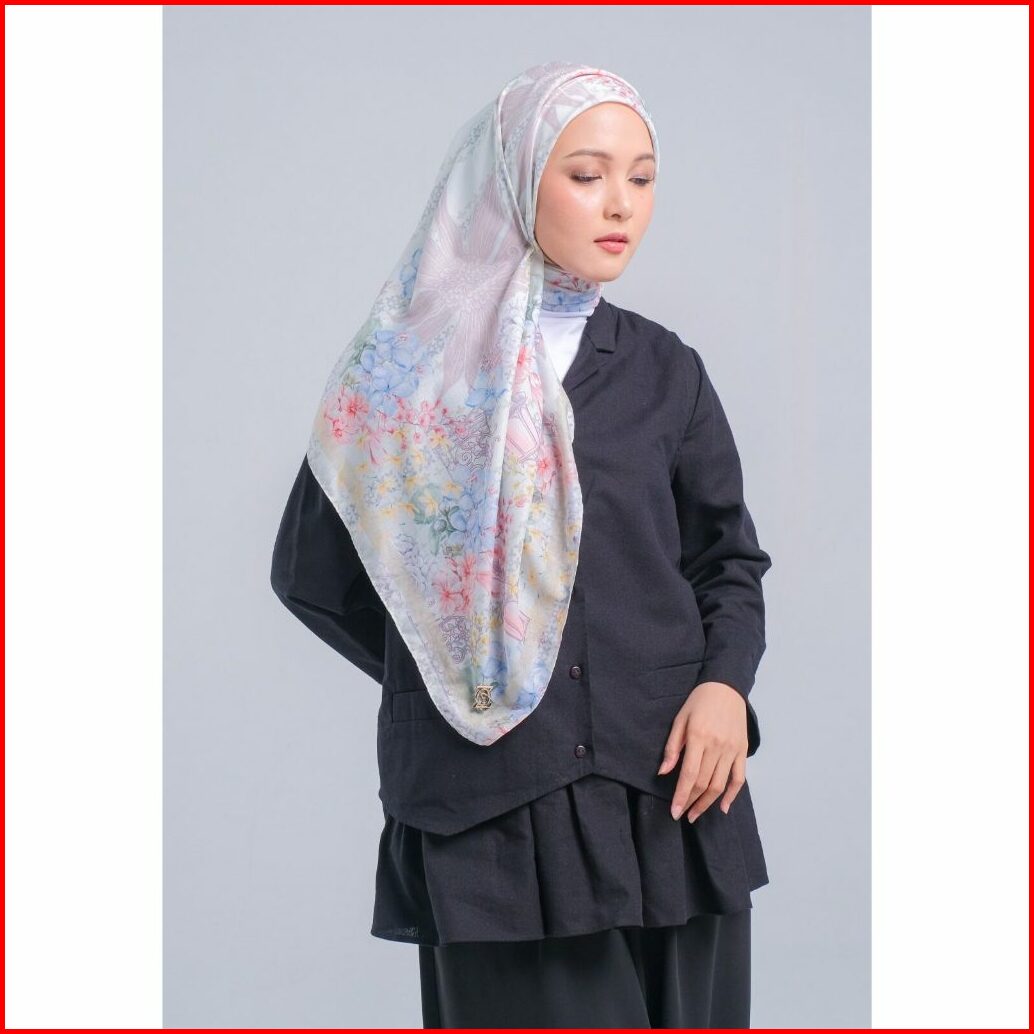 Zoya Tiera Scarf - Kerudung Hijab Segiempat Motif With Box - Bahan Voal Ukuran 115x115