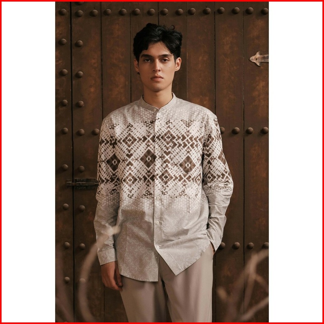 Larusso Khair Collection - Kemeja Koko Printing Pria Lengan Panjang - Korta