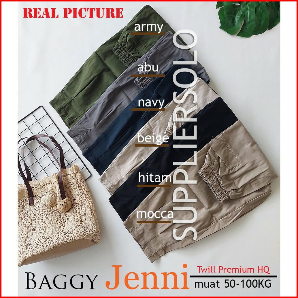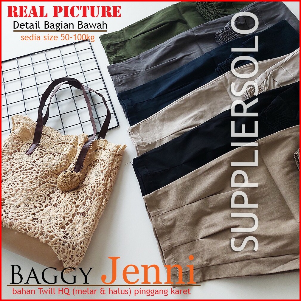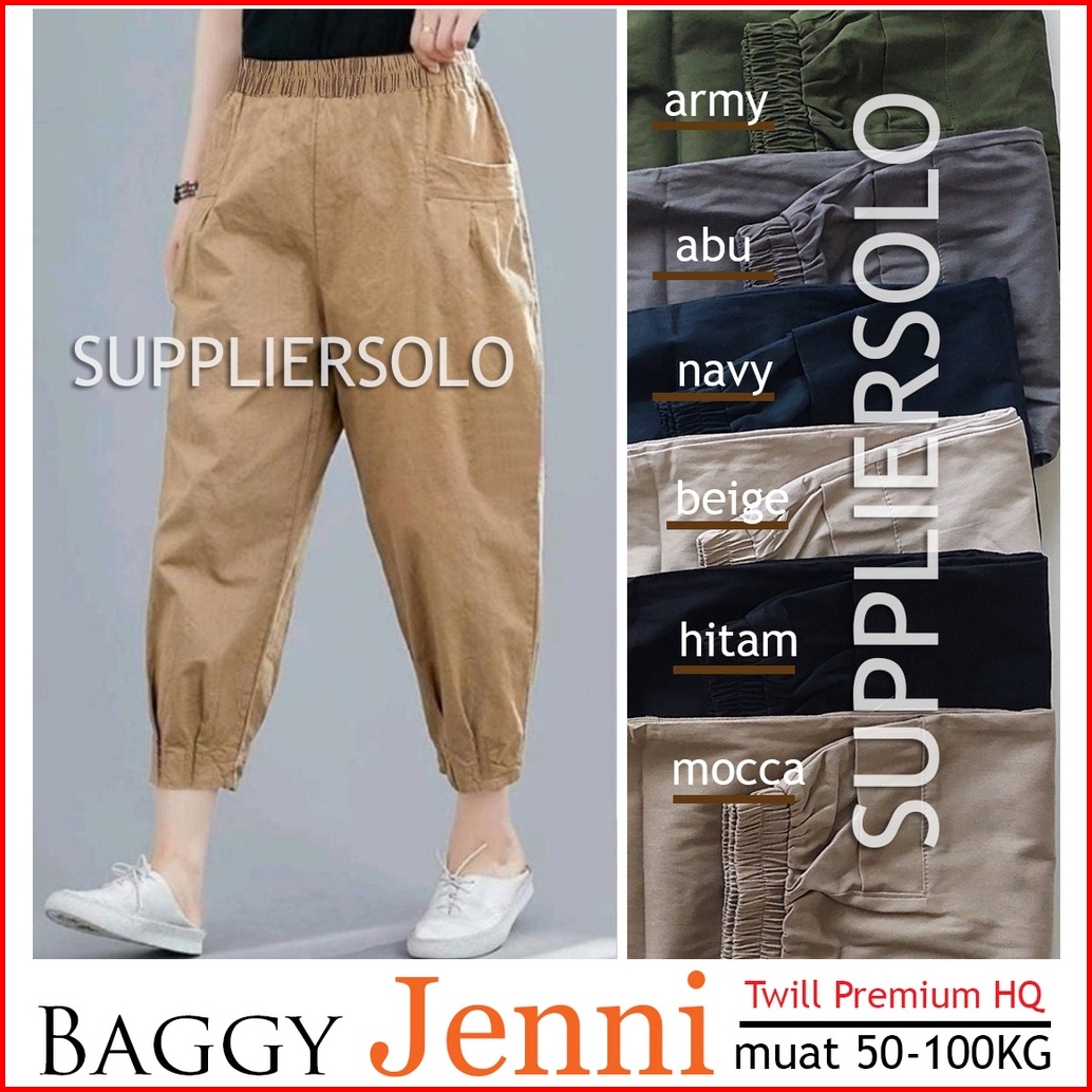 Celana Wanita Korea Baggy Jenni Twill Premium Sedia Ukuran 50kg-100kg Bahan Melar Halus