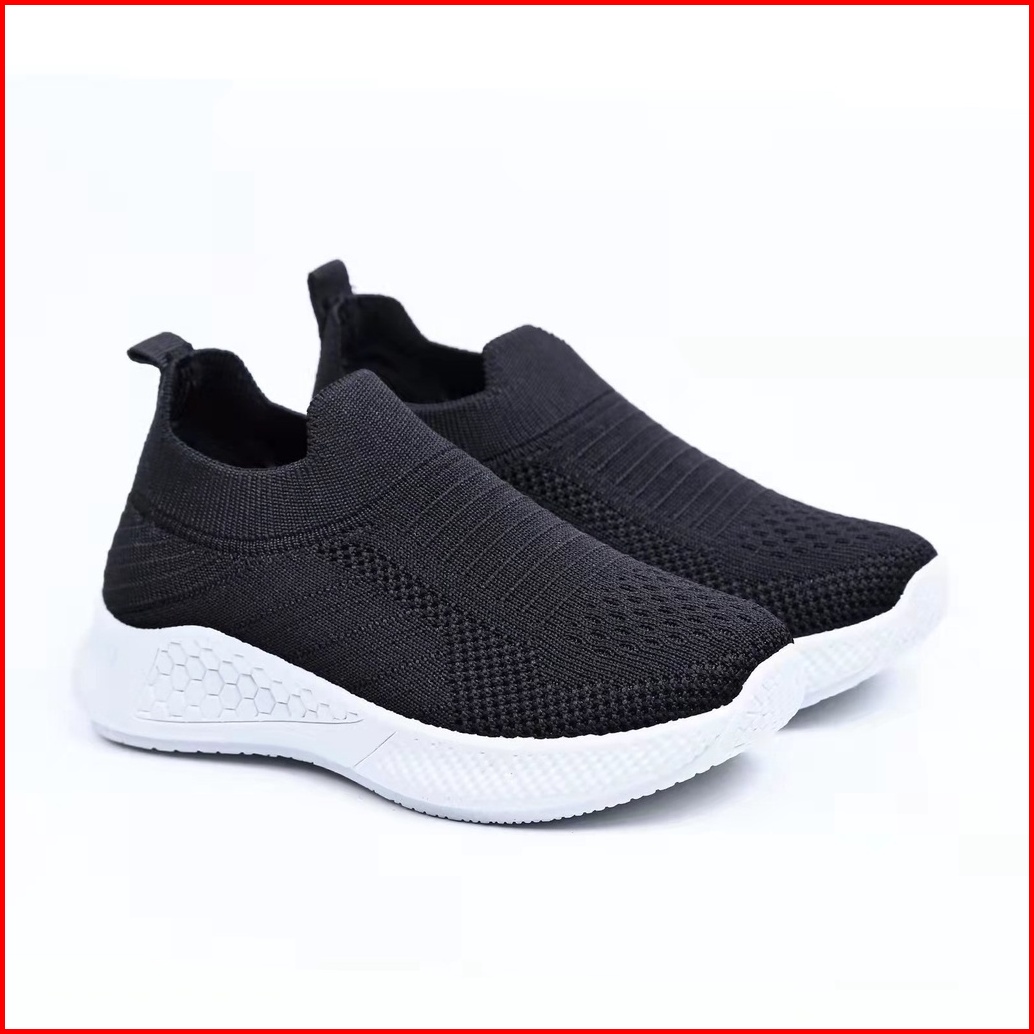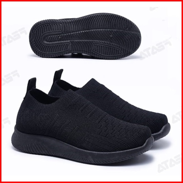 Sepatu Sekolah Anak Ukuran 29-40 Full Hitam Sneakers Hitam Tanpa Tali - A61-h