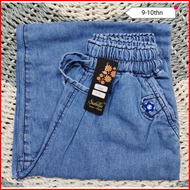 Celana Kulot Jeans Rawis Anak Motif Love Tanggung 7-16 Tahun Celana Kulot Rawis Anak Perempuan Motif Love Celana Anak Pe
