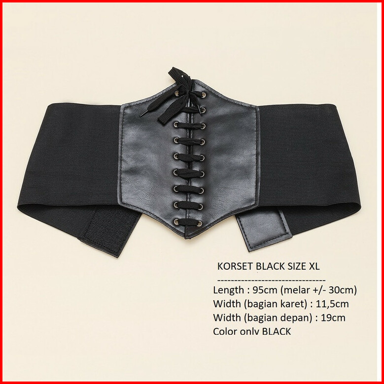 Vendi - Belt Wanita Girdle Black Karet Waist Wide Obi Sabuk Tali Korset