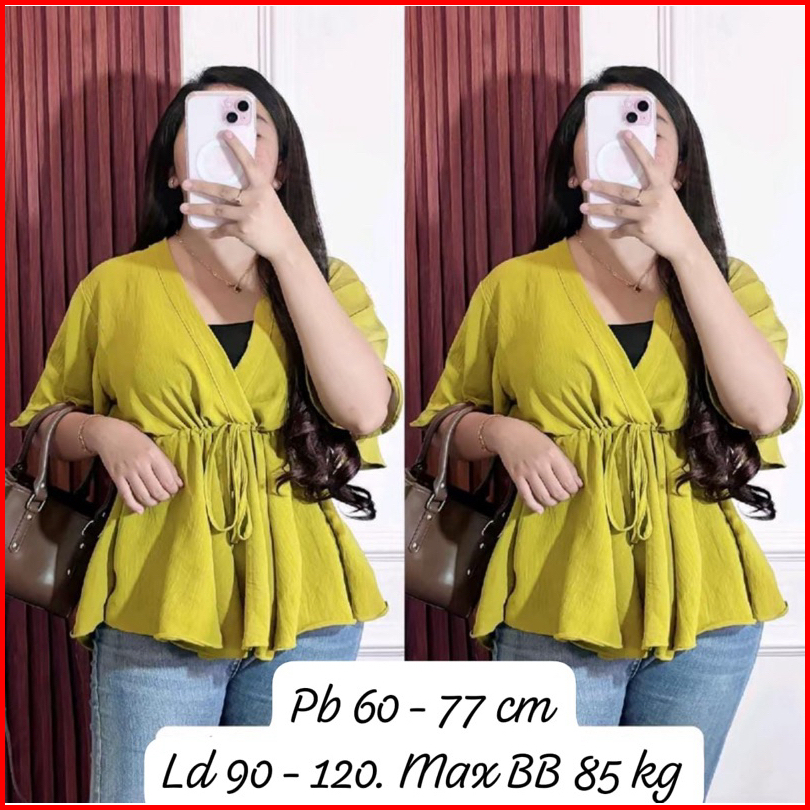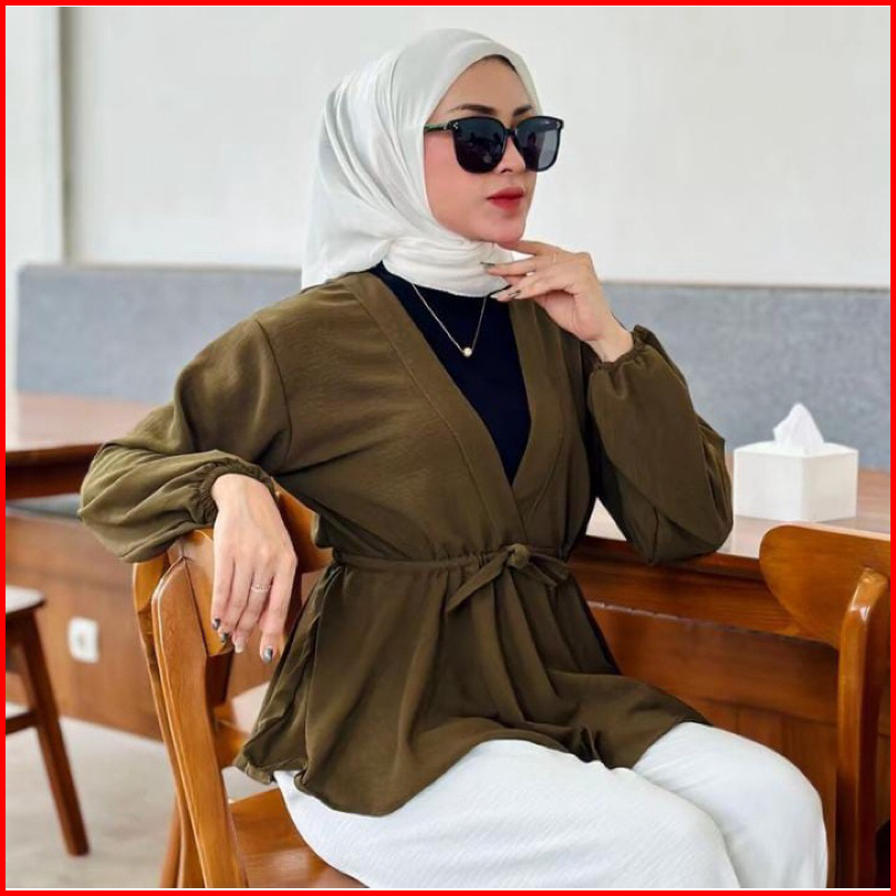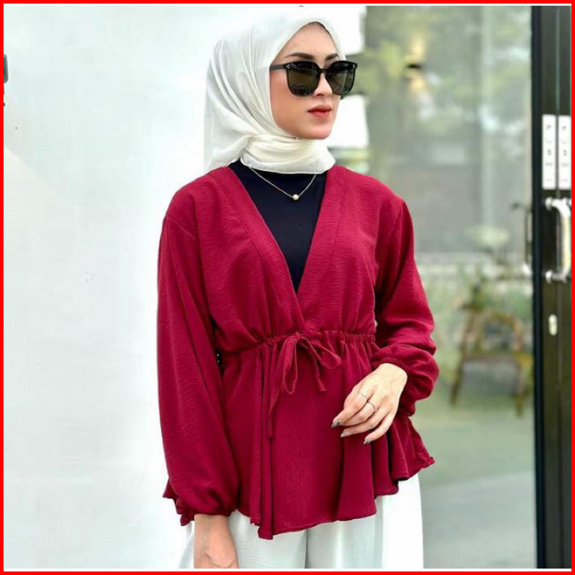 Blouse Wanita Variasi Lengan Panjang Karet Dan Pendek Leher V-neck Atasan Polos Wanita Style Korea Blouse Crinkle Wanita