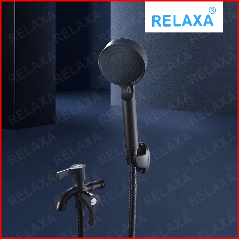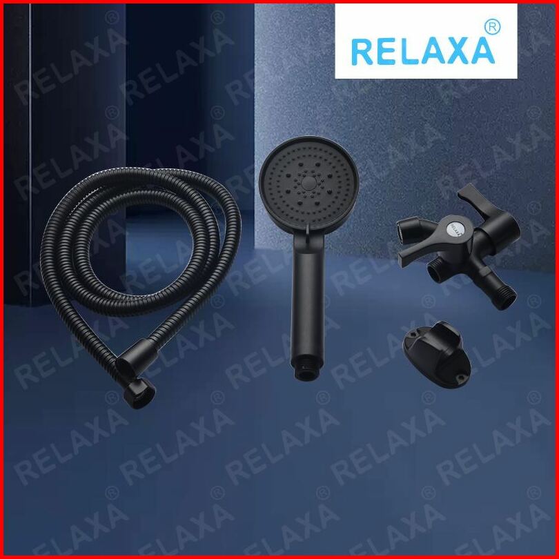 Satu Set Shower Mandi Hitam Premium Kepala Shower Mandi Minimalis Dengan Nozzle Bertekanan Dan Kran Cabang 1 Set Dengan