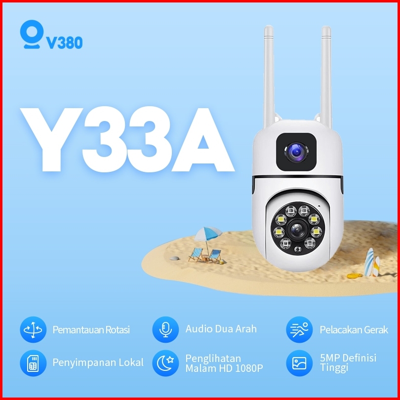 V380 Y33a Outdoor Dual Lens Cctv Camera Kecil Tahan Air Hd 1080p Wi-fi Koneksi Nirkabel Penglihatan Malam Lensa Ganda Ka