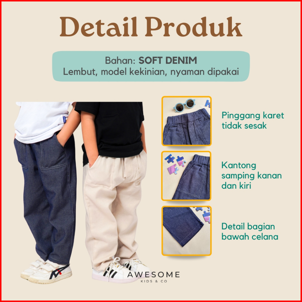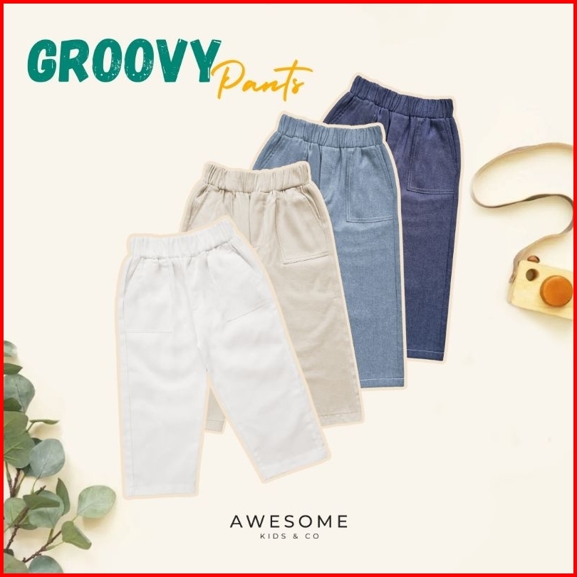 Awesomekids 2-10 Th Groovy Pants Celana Chino Basic Panjang Anak Denim Laki Perempuan Putih Cream
