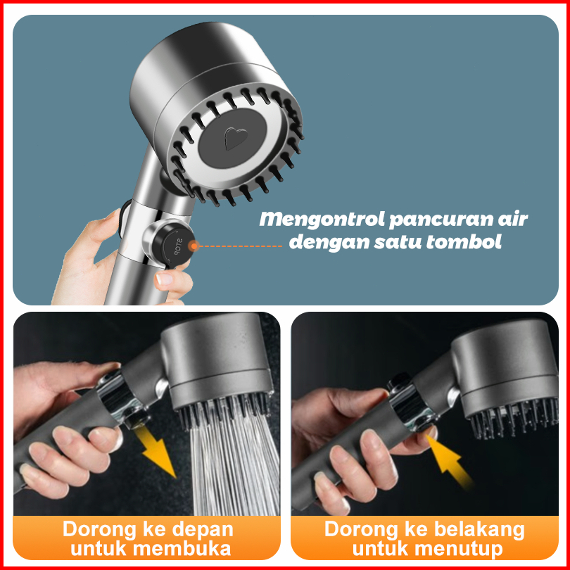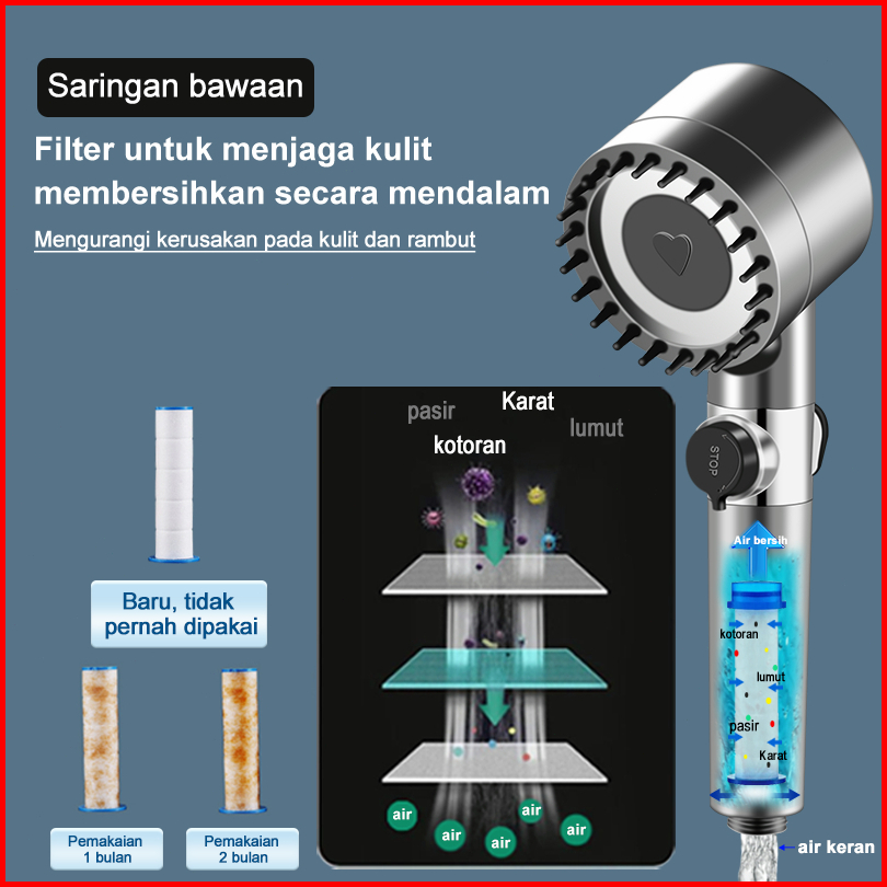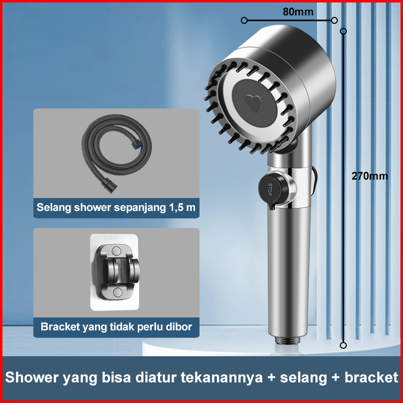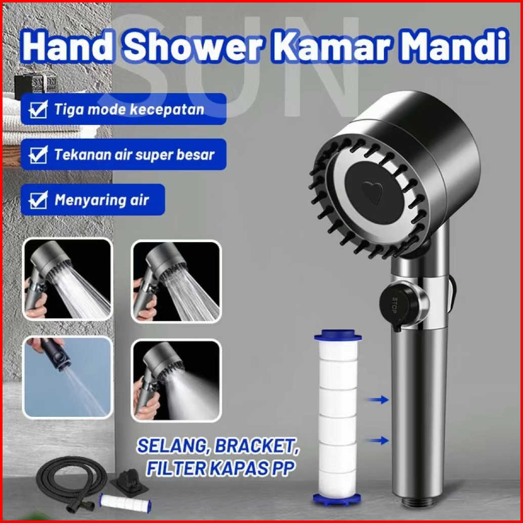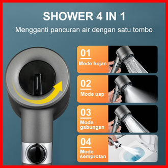 Kepala Shower Kamar Mandi Saringan Bawaan 4-mode Hand Shower Tekanan Tinggi Hadiah Selang 1.5 M Braket