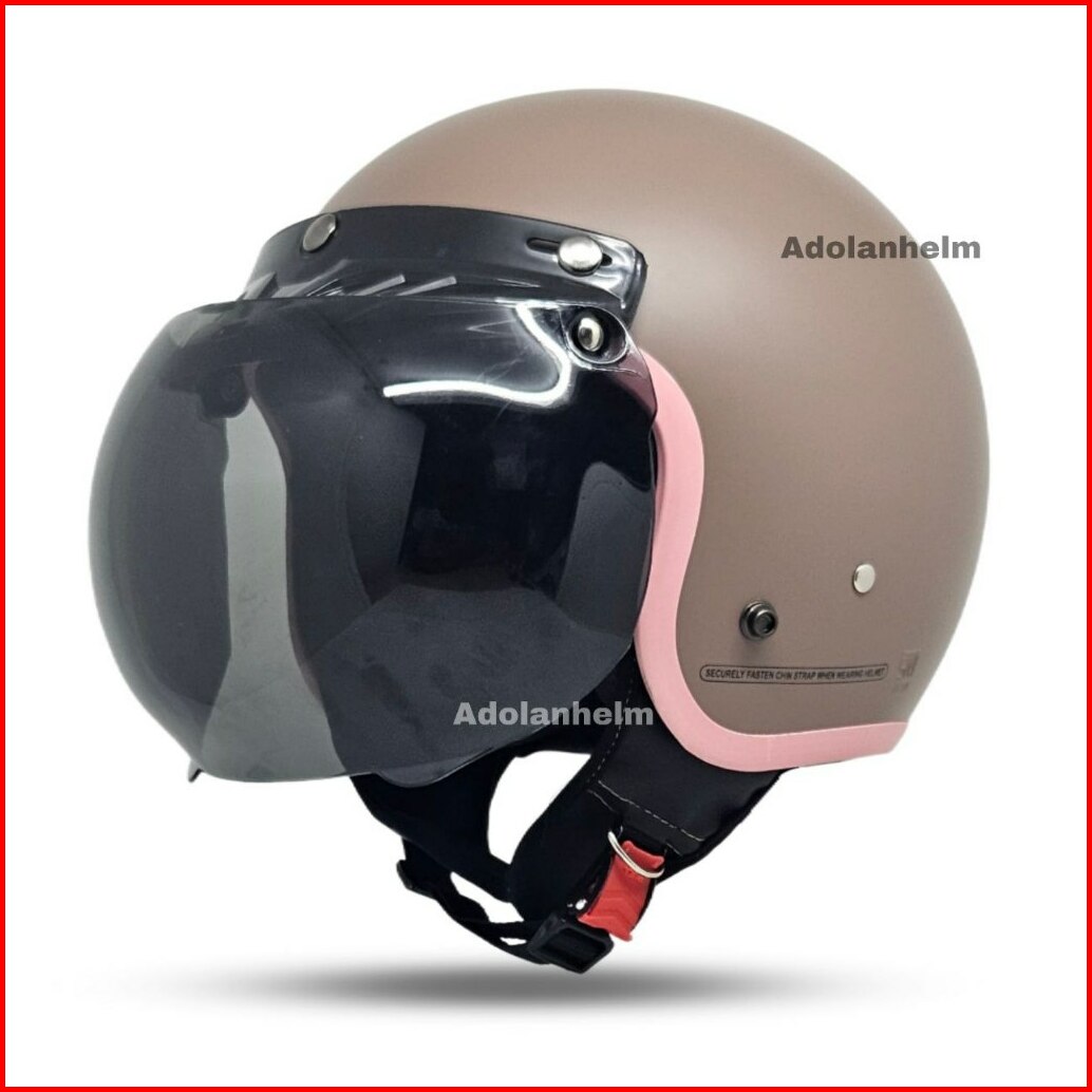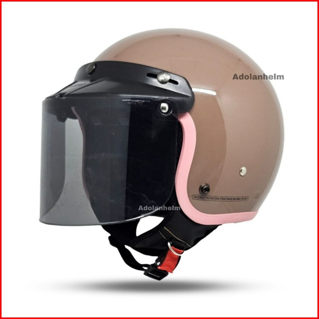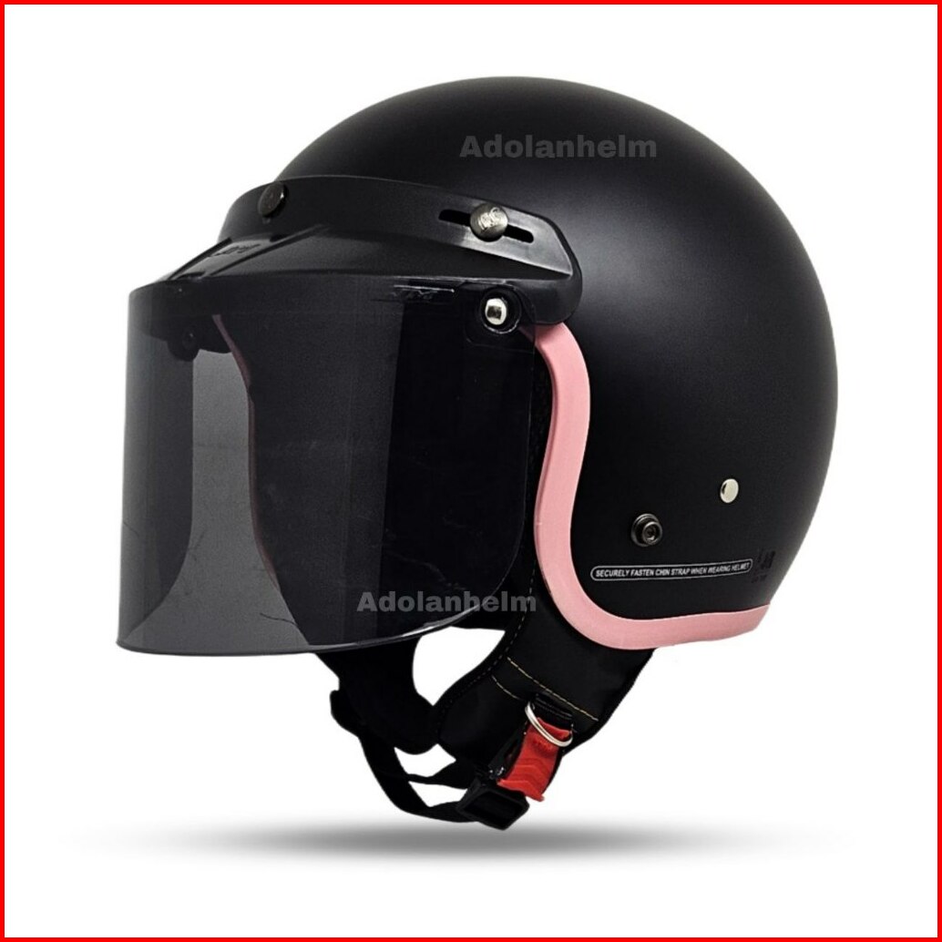 Helm Bogo Wanita Hijab List Pink Helm Yrh Bogo Cewek Kekinian Full Leher Sni Flat Visor