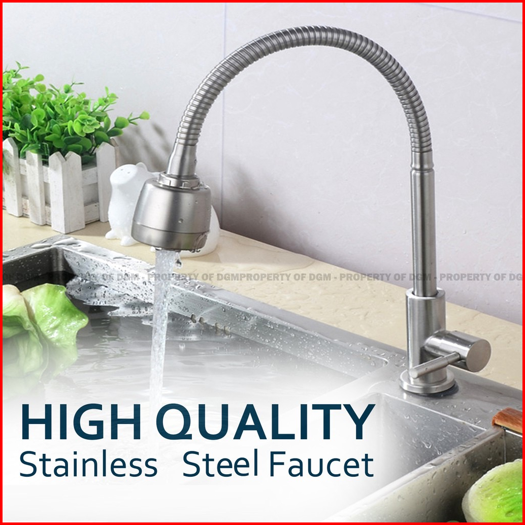 Sus304 Keran Air Angsa Fleksibel 2 Mode - Keran Cuci Piring Angsa - Kran Sink Dapur Drat 1 2 Inc Stainless Kuningan Cuci