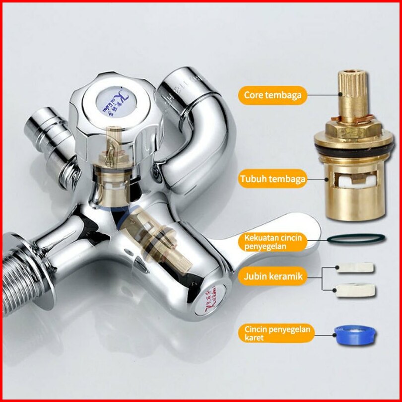 Kran Cabang Chrome Kran Air Keran Tembok Wall Tap Mesin Kran Mesin Cuci Kran Taman Kran Serbaguna