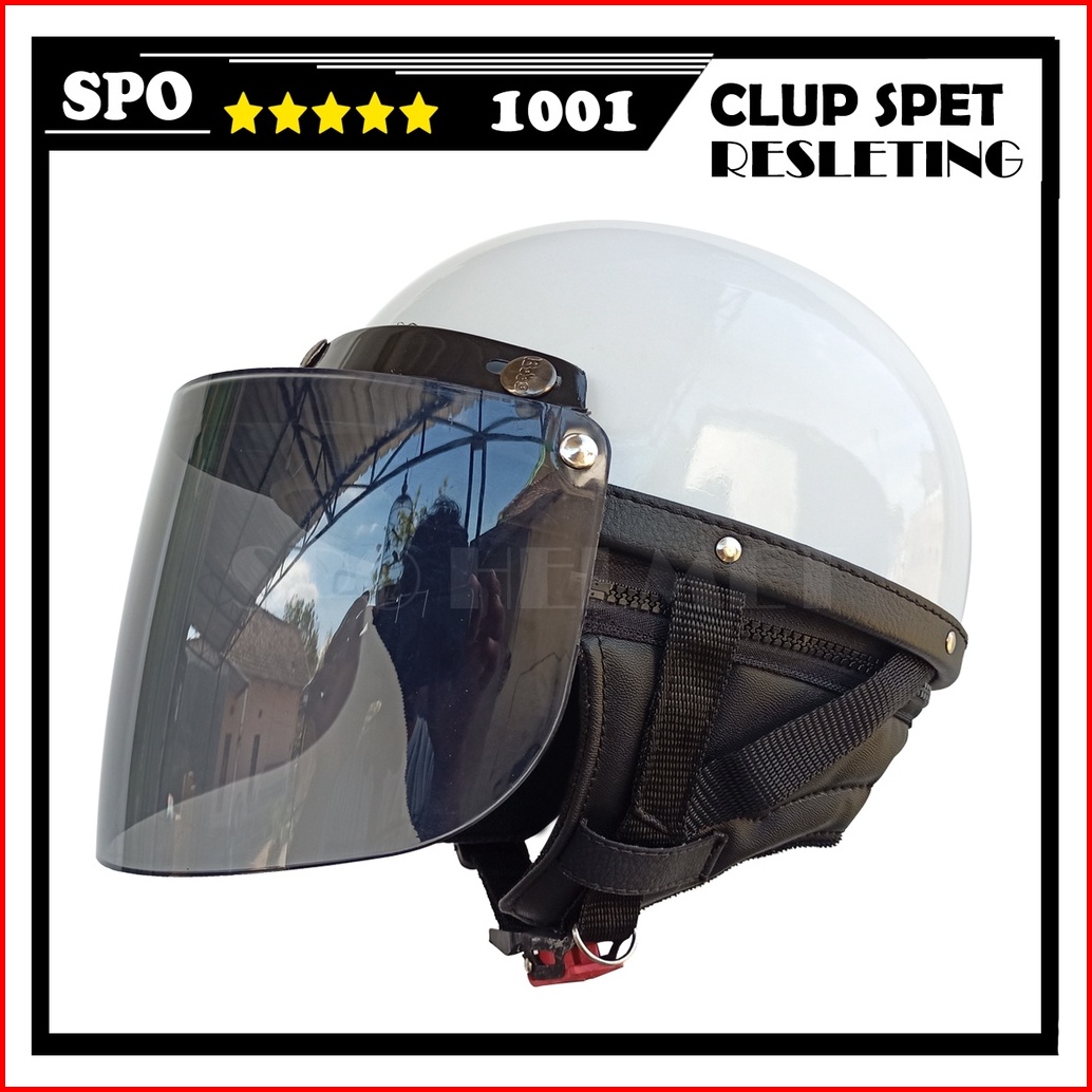 Cl3 - Helm Sepeda Motor Listrikterlaris Spet Club Dewasa Resleting Dengan Pilihan Variasi Kaca Datar