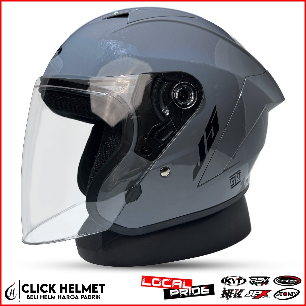 Helm Mla J5 Grey Glosy Kaca Visor Bening Helm Half Face Premium Untuk Pria Dan Wanita Dewasa Sni