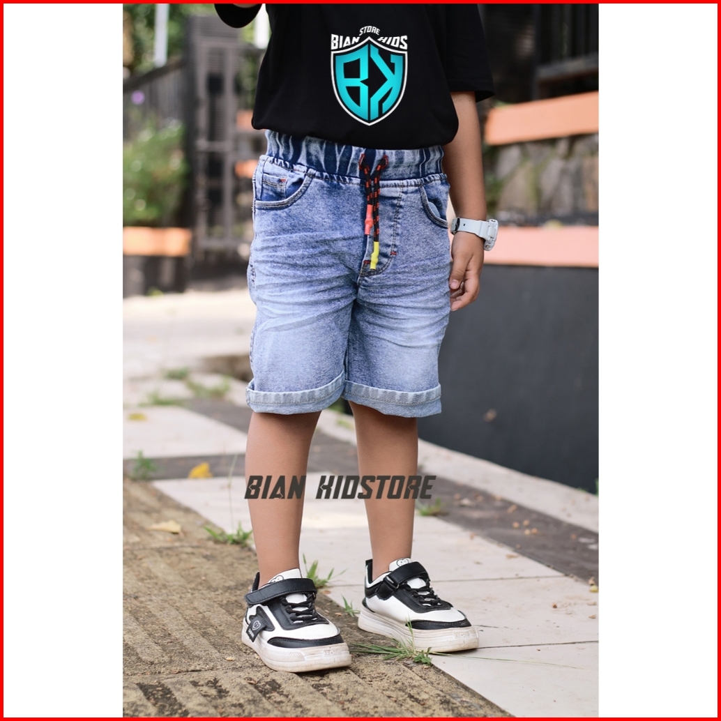 Celana Jeans Anak Pendek Snow Wash 1-12 Tahun Bahan Softjeans Stretch Melar Biankidstore