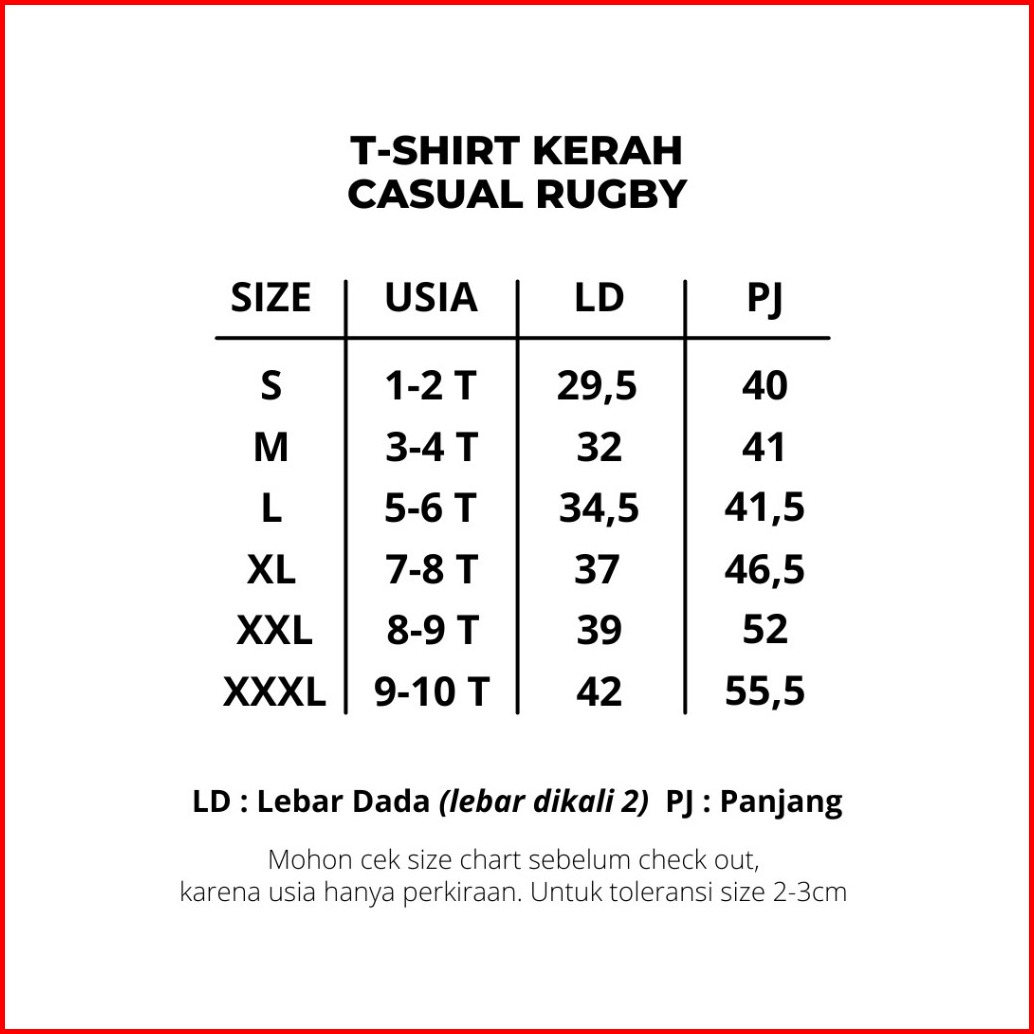 S (1-2T), M (3-4T), L (5-6T), XL (7-8T), XXL (8-9T), XXXL (9-10T)