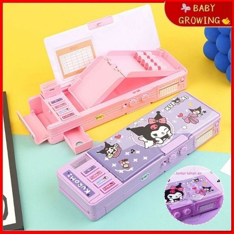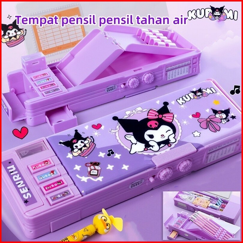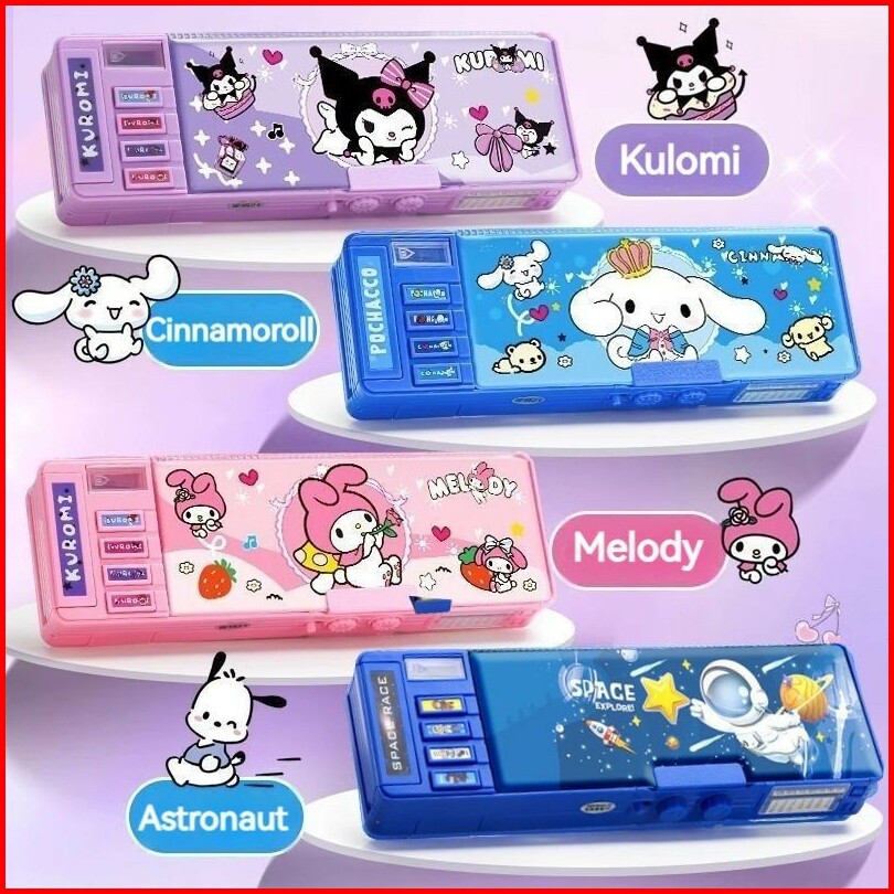 Gaya Baru Kuromi Kotak Alat Tulis Kunci Kode Multifungsi Kotak Pensil Anak Perempuan Sanrio Dua Sisi Bernilai Tinggi Kap