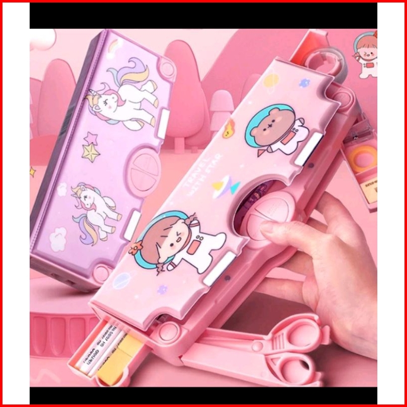 Kotak Tempat Pensil Viral Multifungsi Motif Astronot Pink