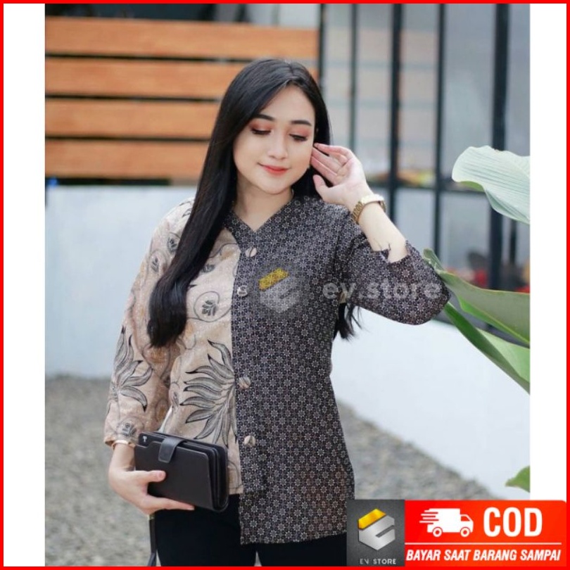Baju Batik Wanita Asj Sa Hrb026 Kenongo Kemeja Pendek Atasan Batik Wanita Modern Monalisa Genes