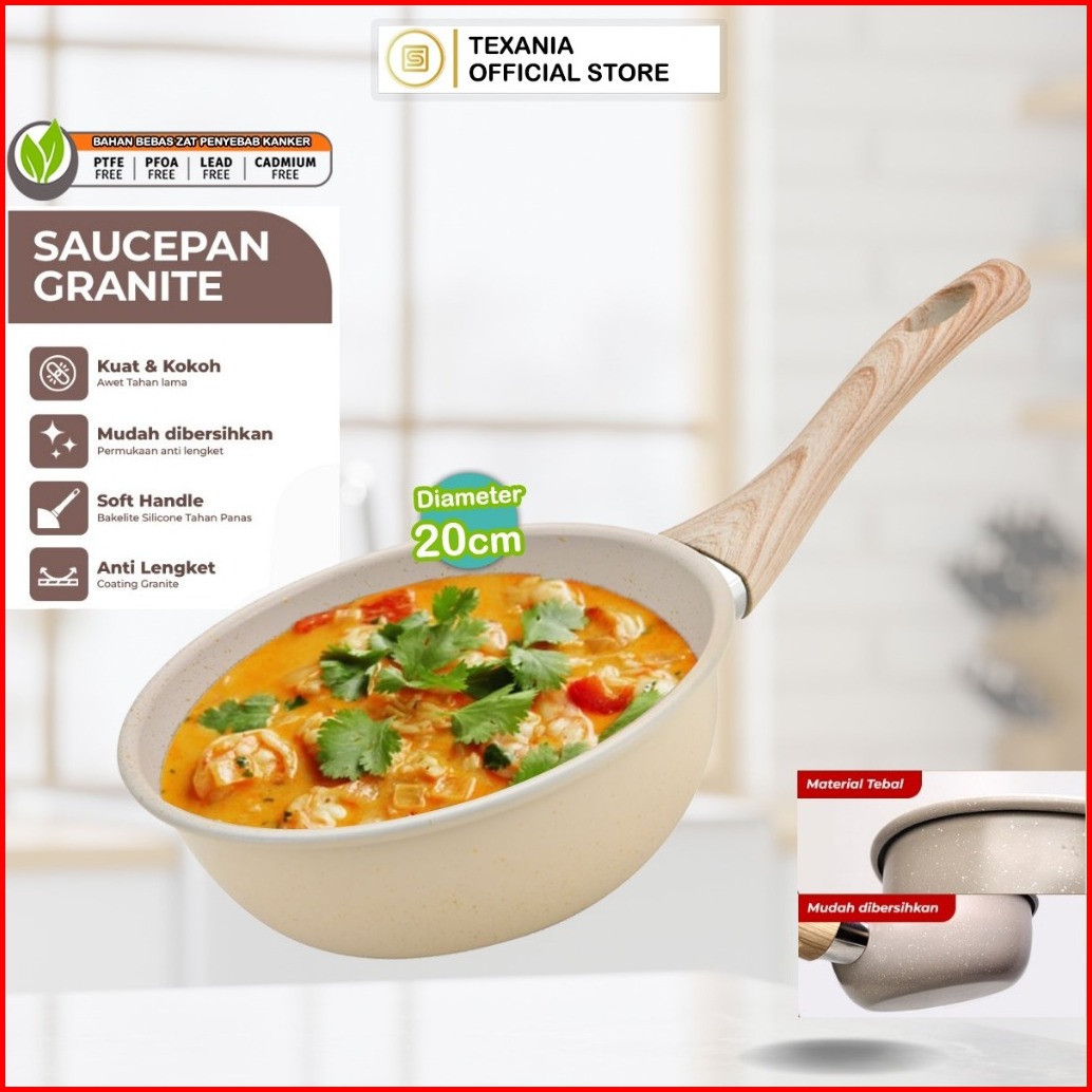 Texania Saucepan Panci 20cm Wajan Anti Lengket Warna Cream Aluminium Aloy Milk Pot Panci Susu Anti Lengket Mudah Dibersi