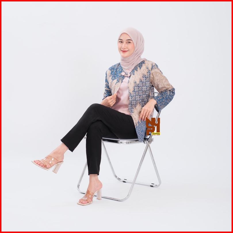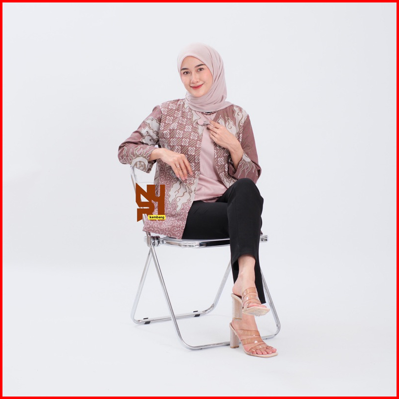 Baju Batik Wanita Modern Model Bolero Lengan Panjang Motif Seroja Batu Resleting Belakang