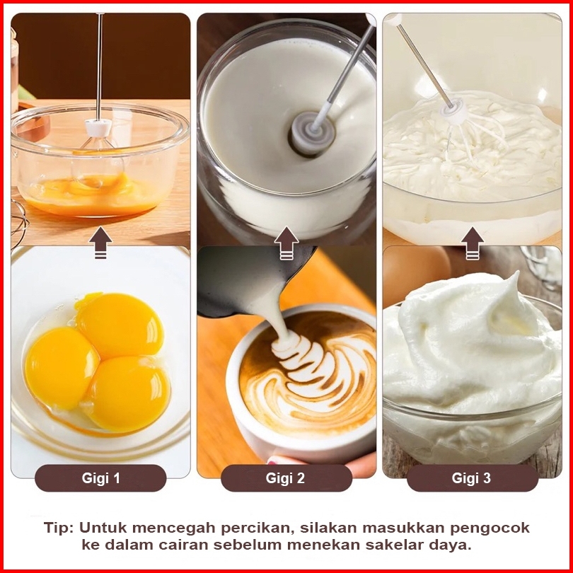Electric Hand Blender Tangan Pengaduk Kopi Milk Frother Portable Handheld Mixer Usb Rechargeable 1200mah