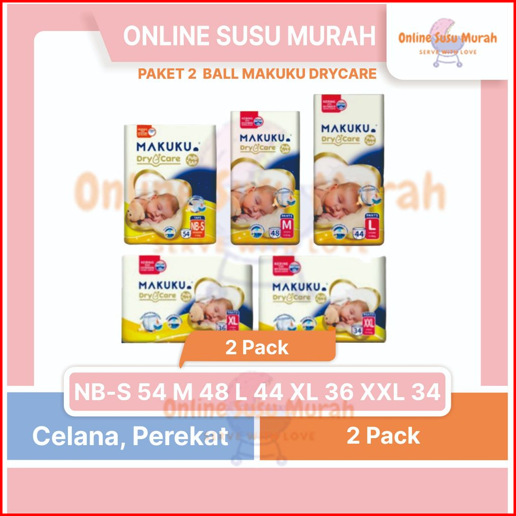 Makuku Drycare Paket 2 Ball Tape Nb-s 54 Pants M 48 L 44 Xl 36 Xxl 34 Popok Perekat Celana Ppks