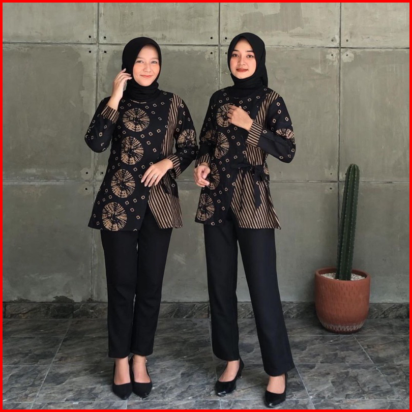 Tey-17 Batik Wanita Asj Sa Hrb026 Kenongo Kemeja Tosca Pendek Batik Couple