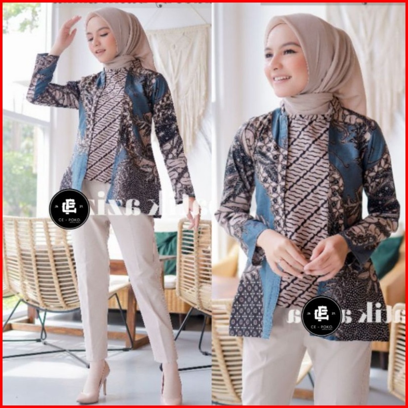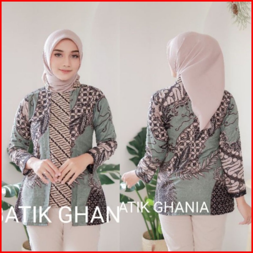 Tey-17 Batik Wanita Asj Sa Hrb026 Kenongo Kemeja Tosca Pendek